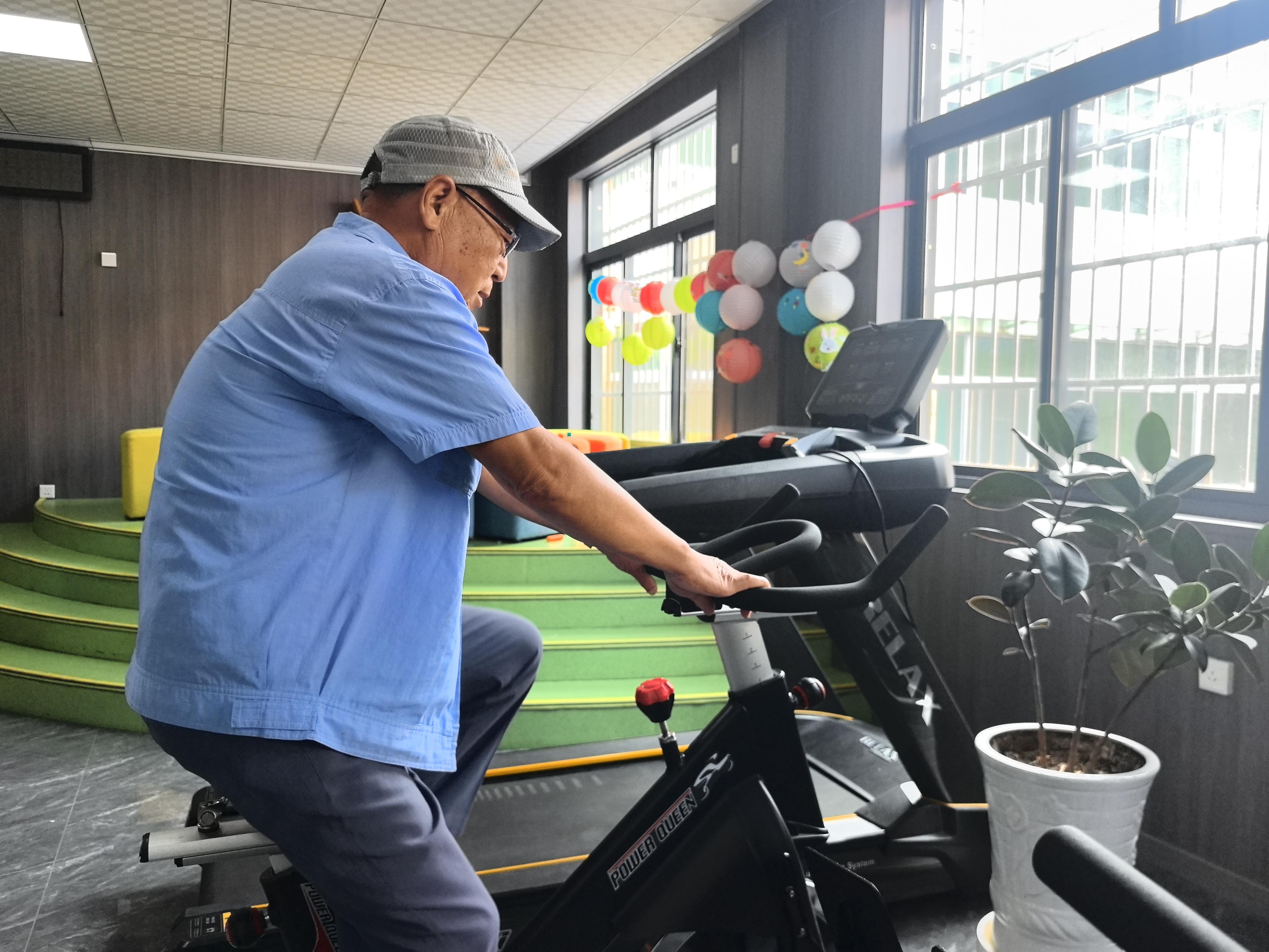 在社区二楼,78岁的郑广岐老人正在健身区“蹬自行车”。他边运动边介绍:“我经常来这里锻炼,社区还经常组织剪纸、画画等活动。”他指着二楼的“城市书屋”区域展示的花艺作品说,这是他经过培训后完成的作品。不远处,大学生志愿者带着孩子们讲绘本故事,还有的教孩子们制作漆扇。