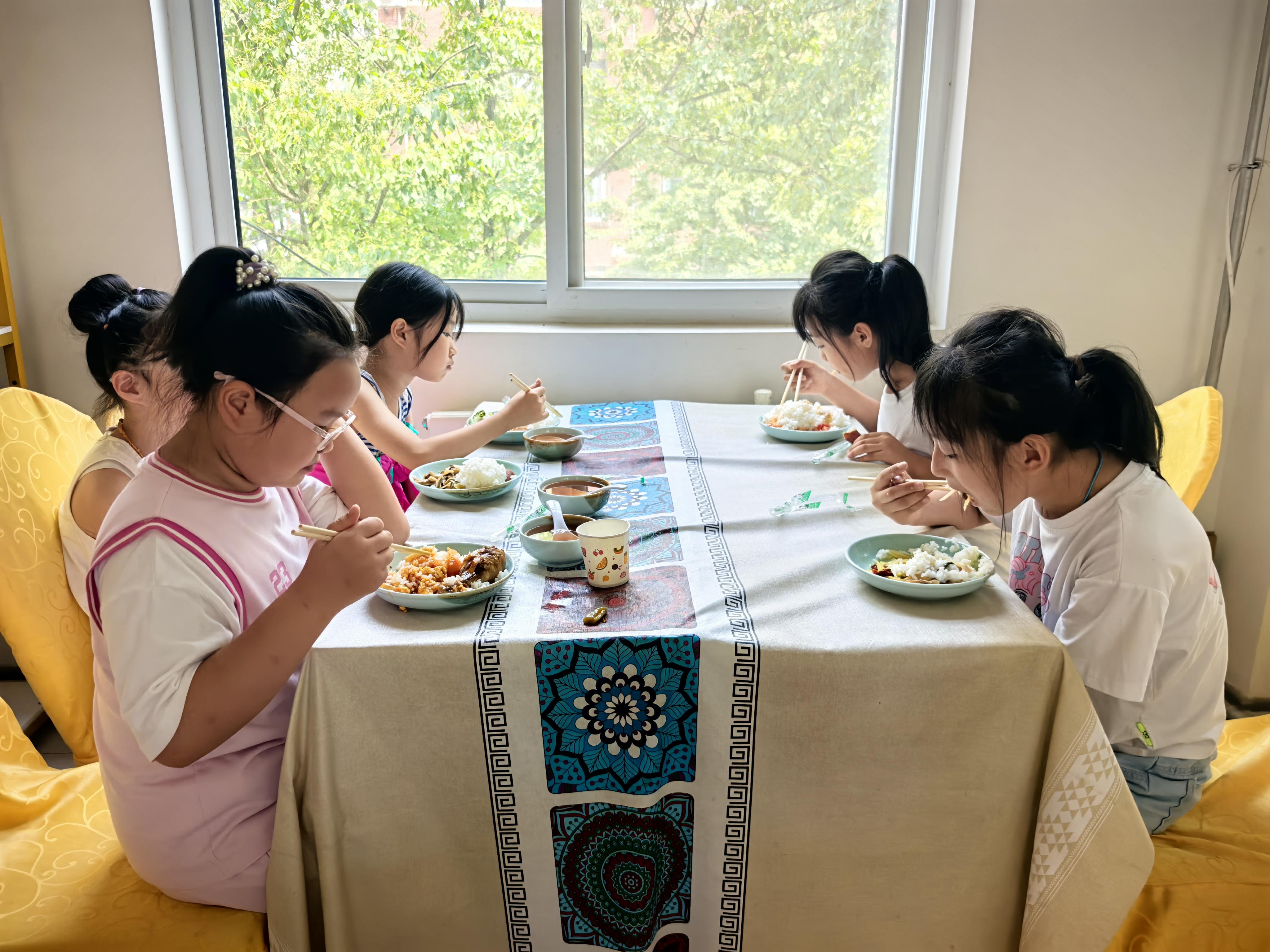 “在这里比在家有意思多了!”9岁的张梓桐说,父母工作忙,把他送到社区暑期托管班,这里老师认真,午饭也很丰盛。同伴秦思博也连连点头,托管班经常开展活动,比如无人机课、手工课和实验课等,他在这里过得很开心。
