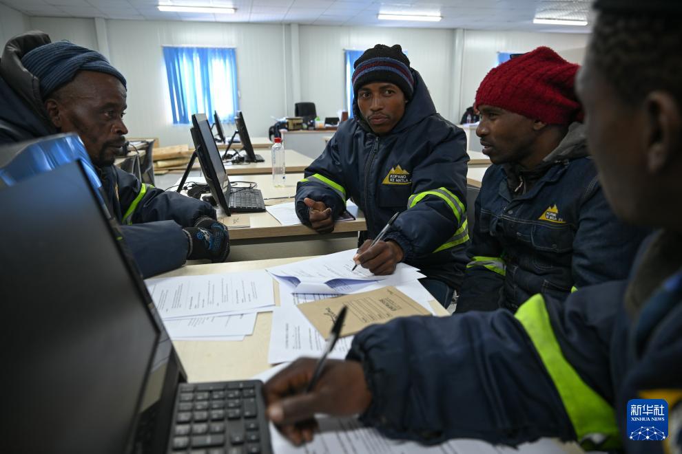 7月7日,在位于莱索托东部的莫霍特隆地区,施工人员在波利哈利输水隧洞建设项目培训中心参加技能培训。新华社记者 杨光 摄