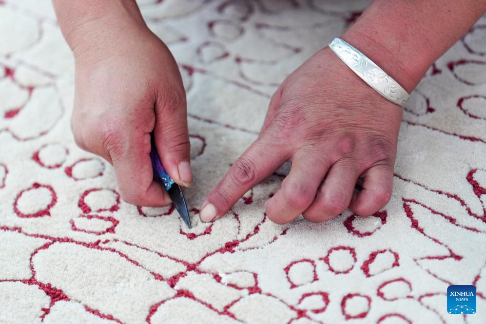 In recent years, Qinghai has guided Tibetan carpet enterprises to integrate modern technology and traditional handicrafts, which injects new momentum into rural revitalization while preserving traditional skills. (Xinhua/Qi Zhiyue)