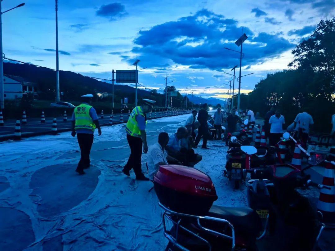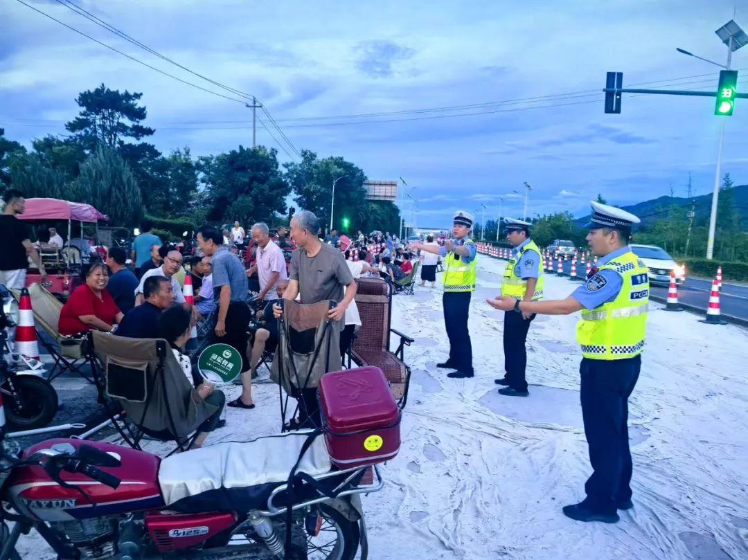 为全力让广大群众纵享平安纳凉,周至公安交警集贤中队民辅警,每日傍晚走进辖区峪口、桥梁、河堤、国省道沿线村庄周围等路段,以“劝导+宣传”的方式,对路边乘凉纳暑的群众进行安全劝导,引导群众到安全区域乘凉聊天,并清理占道停放的电动车和三轮车,及时消除道路交通安全隐患,维护良好交通秩序。