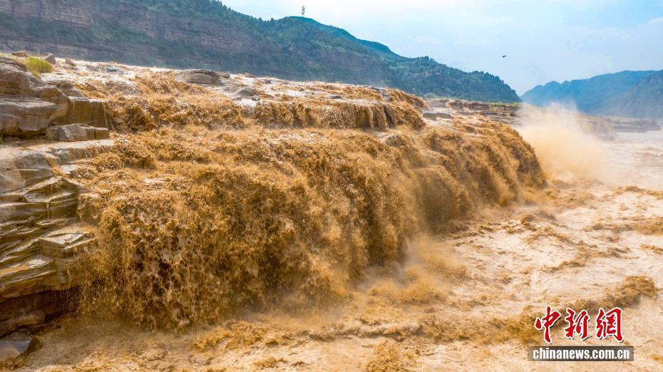 受上游地区降水影响,陕西黄河壶口瀑布近日瞬时水流量骤增,出现双瀑景观。图为黄河壶口瀑布美景。
