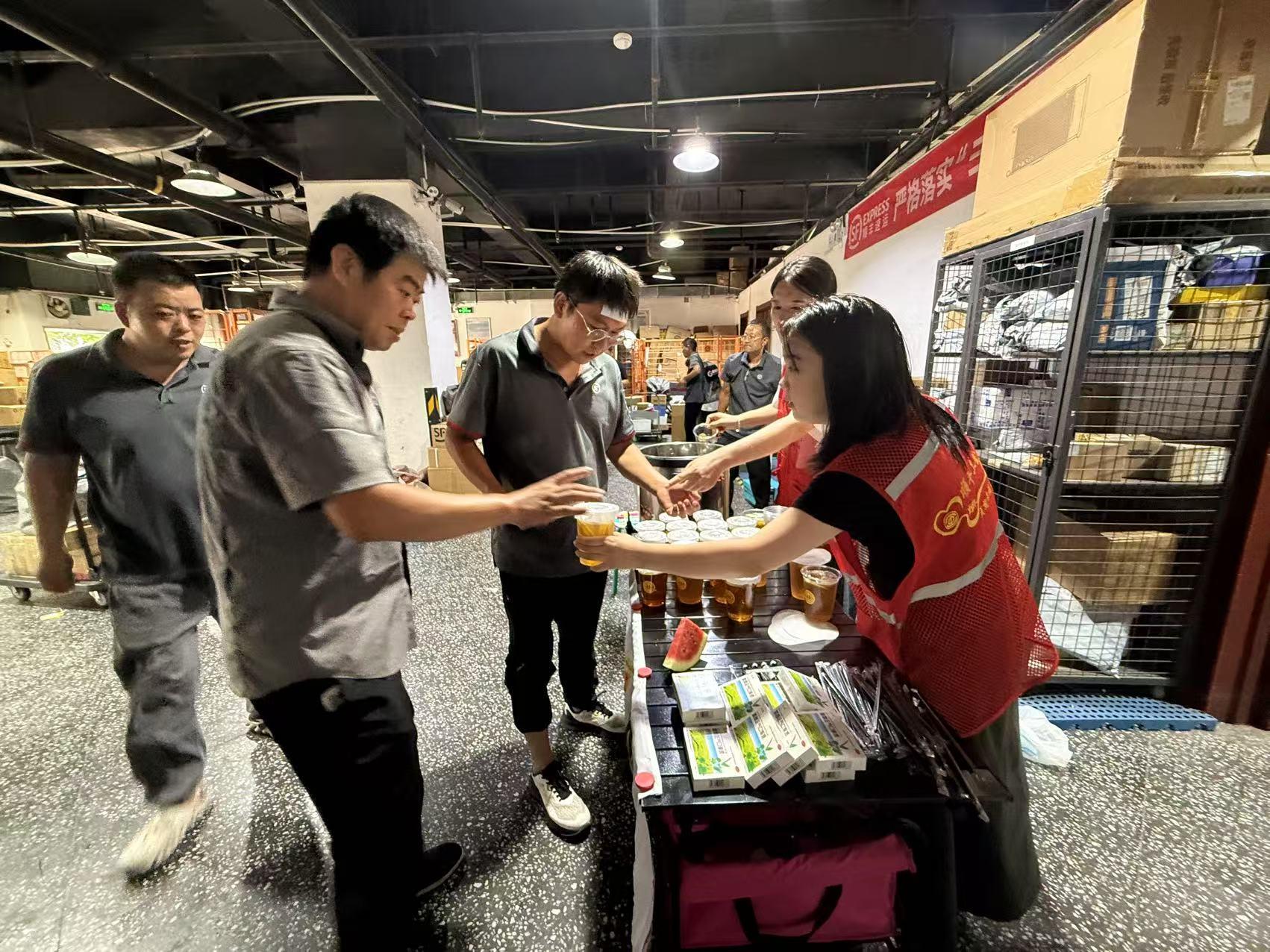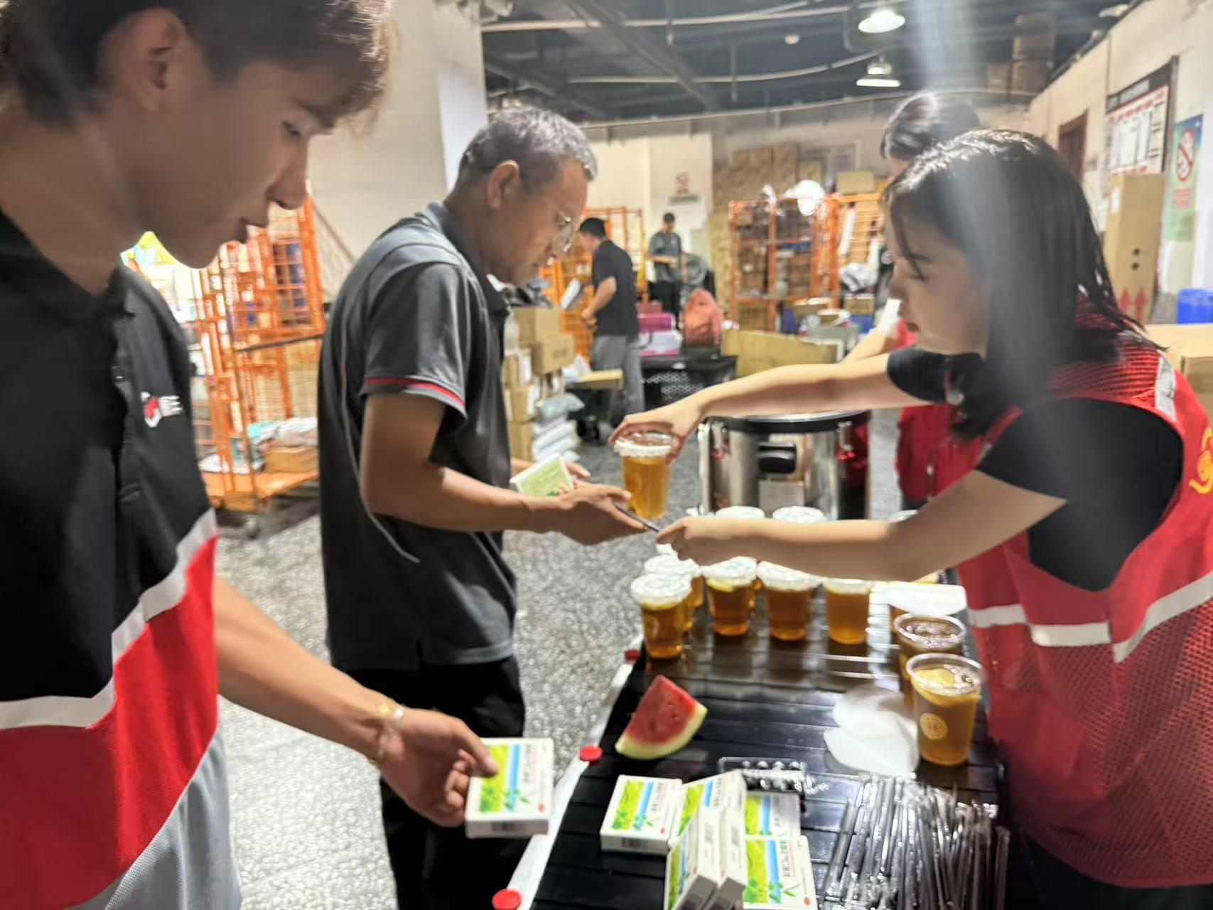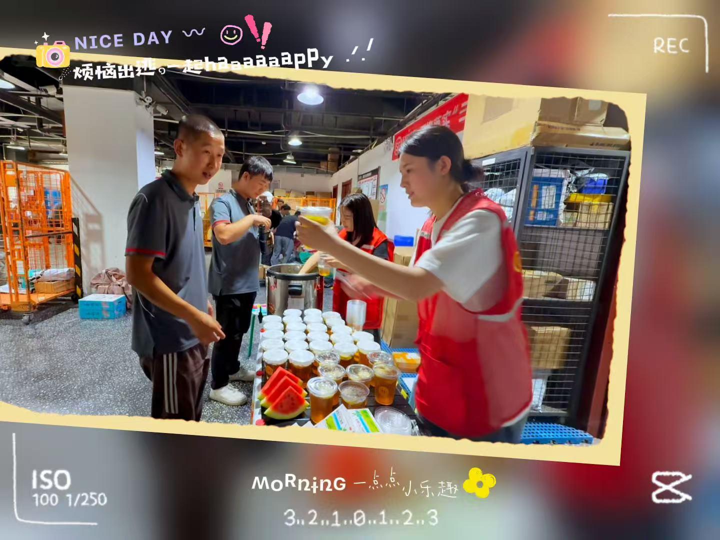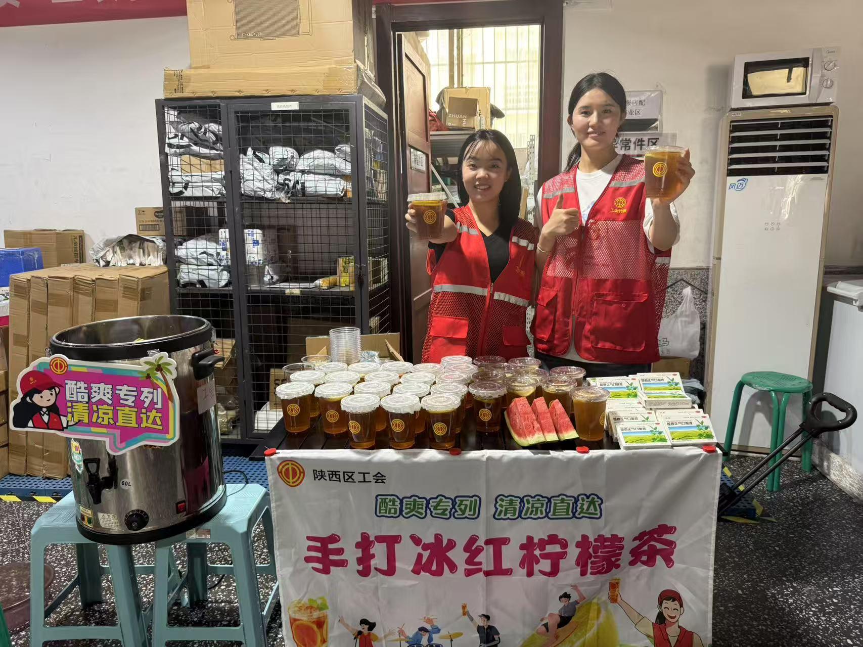程蓉说:“入夏以来,我们工会通过落实防暑降温保障措施、提供高温补贴等举措,用实际行动关心关爱一线工作者,为快递小哥送清凉。顺丰陕西区域网点加营业站点有一千余家,每个站点都有工会代表,采取了酷爽专列随机到达和常规配置加大频次的办法,同时进行‘夏日送清凉’活动。根据网点件量,我们会随机发出酷爽专列,下沉网点现场,制作一些精致的饮品,希望能给大伙在送上清凉的时候,送来好心情。同时联动每个站点的工会代表,将工作内容分派给工会代表,提示他们采取煮绿豆汤、发放藿香正气水、保障桶装饮用水供应等办法,尽可能为员工送去关怀。”