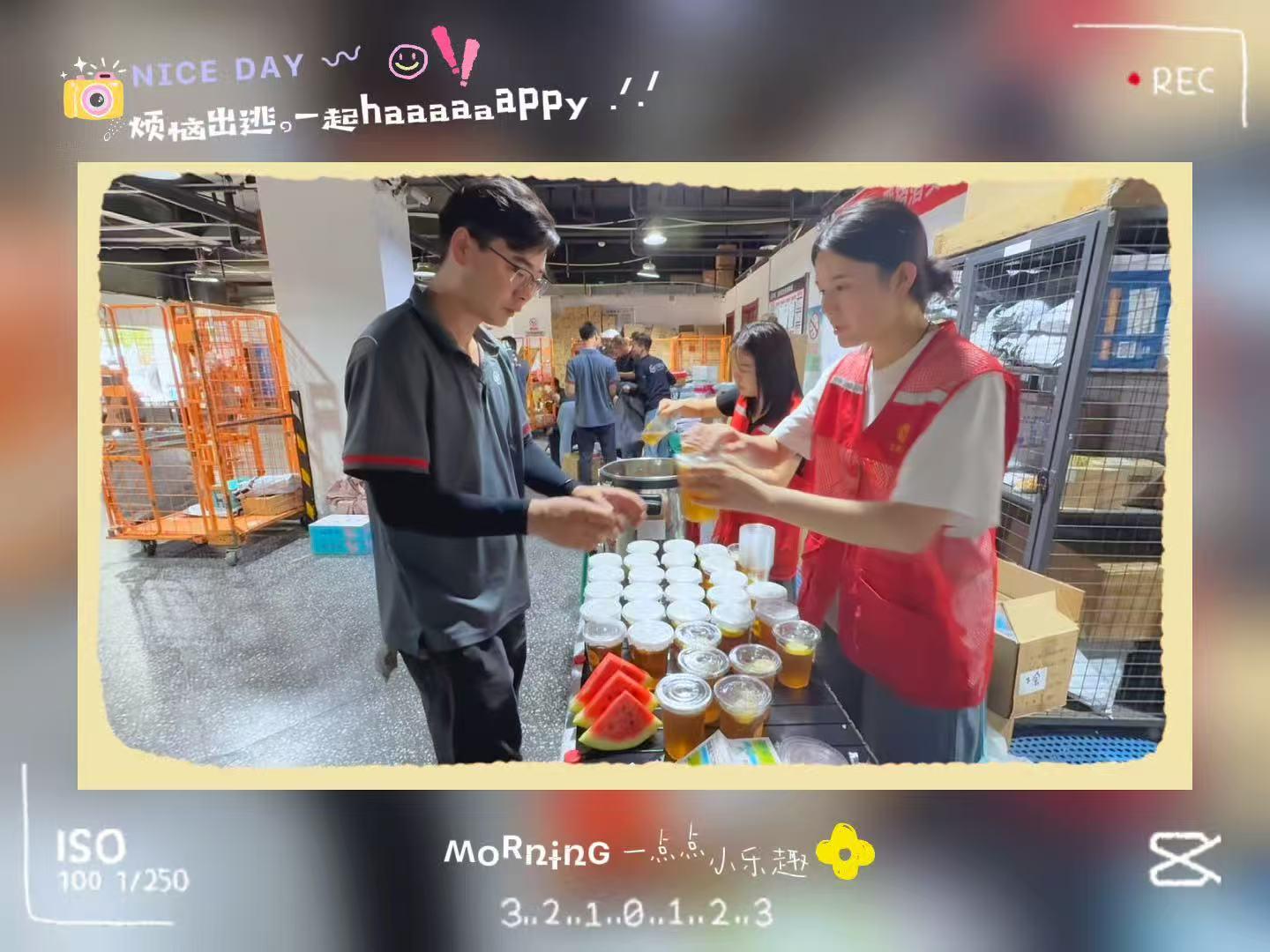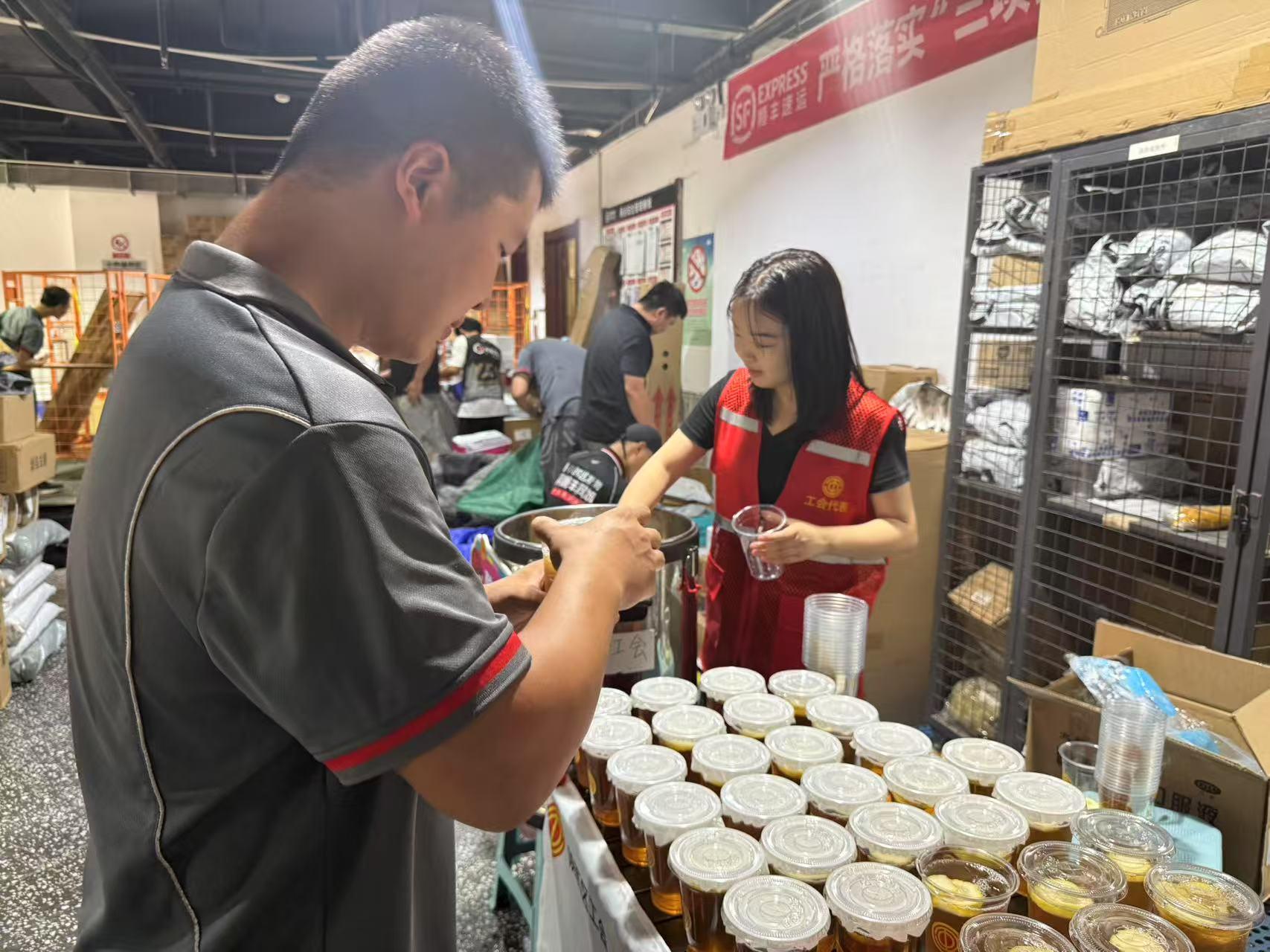 “可以自取也可以用自带杯带走,管够!”顺丰陕西区域工会干事程蓉热情地招呼着大家,她正在和同事现场制作手打冰红柠檬茶。没错,这是顺丰陕西区域工会“夏日送清凉”慰问活动,精心调制的降温消暑饮品。