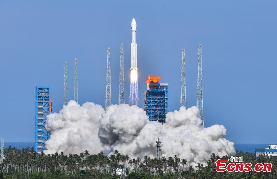 A Long March-8A carrier rocket carrying a group of low Earth orbit satellites, blasts off from a commercial spacecraft launch site in south China's Hainan Province, July 30, 2025. (Photo/China News Service)