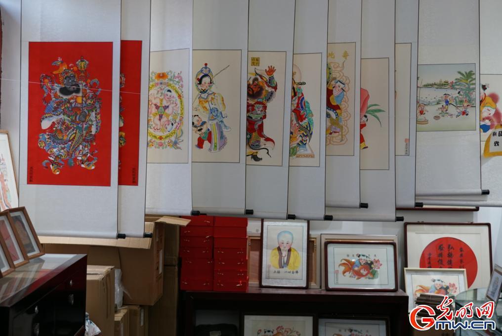 Photo taken on Aug. 7, 2025, shows traditional New Year prints displayed inside the Yuchenghao New Year Print Studio in Yangliuqing Town, north China’s Tianjin Municipality. (Wang Xinyuan/Guangming Picture)