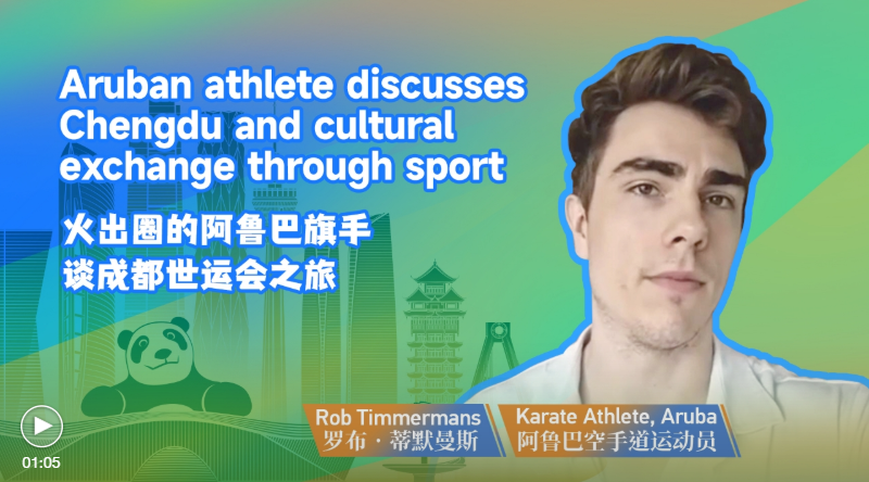 Rob Timmermans, a karate athlete from Aruba, is the Caribbean island's sole representative at the 2025 World Games. The 29-year-old went viral on Chinese social media platform Xiao Hongshu, or RedNote, after a video clip of him carrying Aruba's flag during the opening ceremony was posted. Speaking to CGTN, Timmermans gave us his impression of the city of Chengdu and his thoughts on the value of events like the World Games.