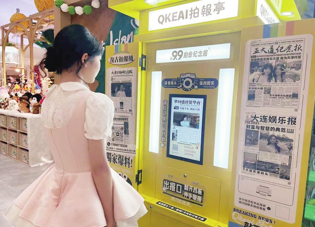 在西安钟楼附近,记者看到还有一些年轻人手持“黑白报纸”,摆出各种创意姿势。来自山东的游客小陈兴奋地说:“这种拍照方式很有创意,拿着‘黑白报纸’拍照,感觉瞬间穿越到了过去,有一种独特的历史氛围感,而且拍出来的照片发到社交媒体上,也特别吸睛。”据了解,这些“黑白报纸”在钟楼、大雁塔等热门景区周边的自动贩卖机上就能找到,受到不少游客青睐。
