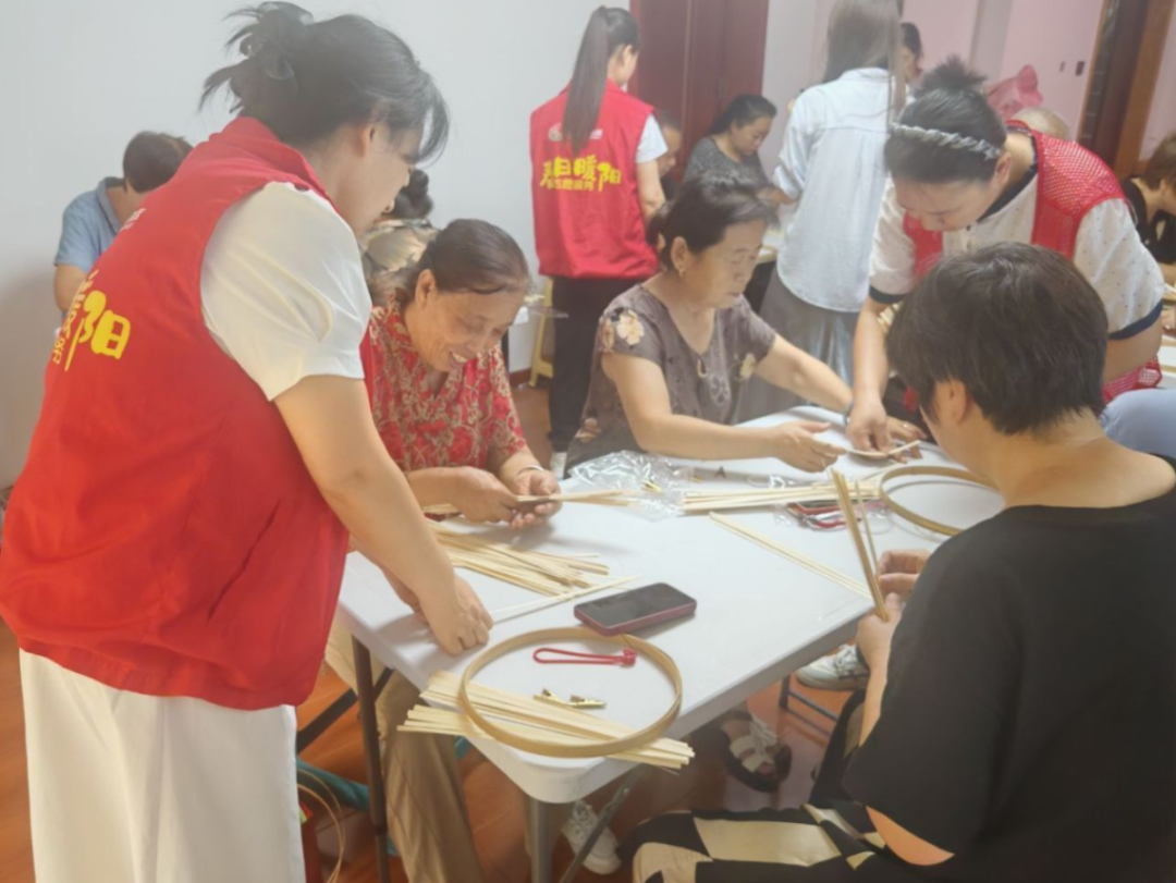 讲解结束后,居民们领取竹篾、剪刀等材料,立即投入创作。现场竹篾轻响,氛围温馨融洽。初学者小心翼翼跟着步骤尝试,遇到问题主动请教;有经验的居民很快上手,指尖翻飞间竹篮渐成雏形;几位老人手法娴熟,边编织边回忆往昔:"以前家里的菜篮、针线篮都是自己编的,今天又找回当年的感觉了!"大家互相帮助,理竹篾、调编法,在共同创作中增进了邻里情谊。