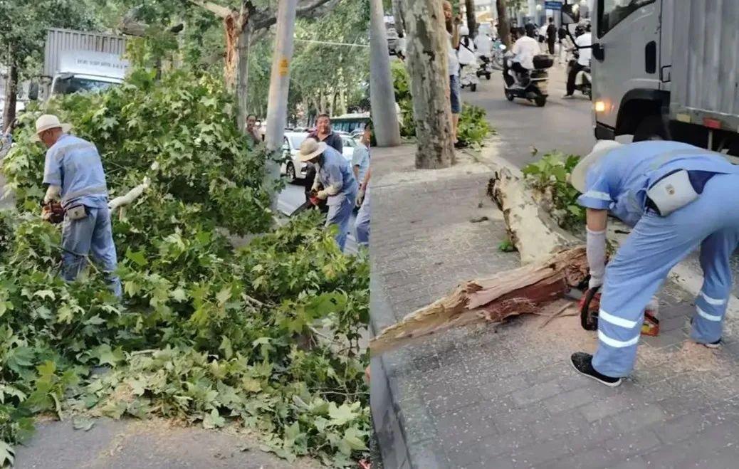 碑林区太白路日前发生一起车辆撞树事故,造成树木倒伏、交通受阻。碑林区城管执法局园林绿化队接报后迅速响应,立即调派专业力量赶赴现场,对倒伏树木进行分段切割和清理,并有序转运残留枝干。经过近两小时高效作业,路面全面恢复畅通,保障了市民出行安全。