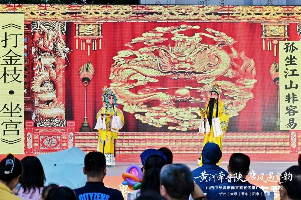 文艺表演则将氛围推向高潮。歌曲《喊一声晋中》婉转悠扬,一句“走一走乔家大院深,听一听晋商走四方”,便将晋中的风流倜傥送入观众心间;经典晋剧《打金枝》选段韵味悠长,字正腔圆间尽显晋文化的深厚底蕴;木偶戏《变脸》妙趣横生,木偶的灵动与变脸的奇幻交织,引得观众啧啧称奇;唢呐《龙腾虎跃》激昂高亢,奏响了三晋大地的蓬勃朝气,也吹热了陕晋两地的情谊。