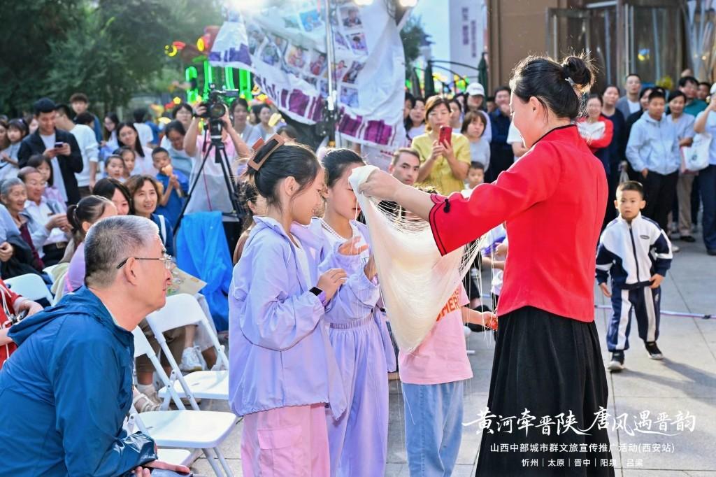 现场的精彩远不止于推介。山西面食技艺表演堪称视觉盛宴:一根面能拉出千米长,如银线飞舞;一块面能捏出百态样,似巧夺天工。吹面、刀削面、龙须拉面轮番登场,不仅吊起了“碳水之都”西安市民的胃口,更引发了饮食文化的深度共鸣。“到山西旅游,咱西安人的胃肯定不受亏待!”市民李大姐的感慨,道出了两地人对面食的共同热爱。