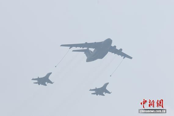 Early-warning aircraft KongJing-500A, escorted by J-16 fighter jets, and KongJing-600, escorted by aircraft carrier-based fighter jets J-15T, flew over Tian'anmen Square in Wednesday's V-Day military parade.