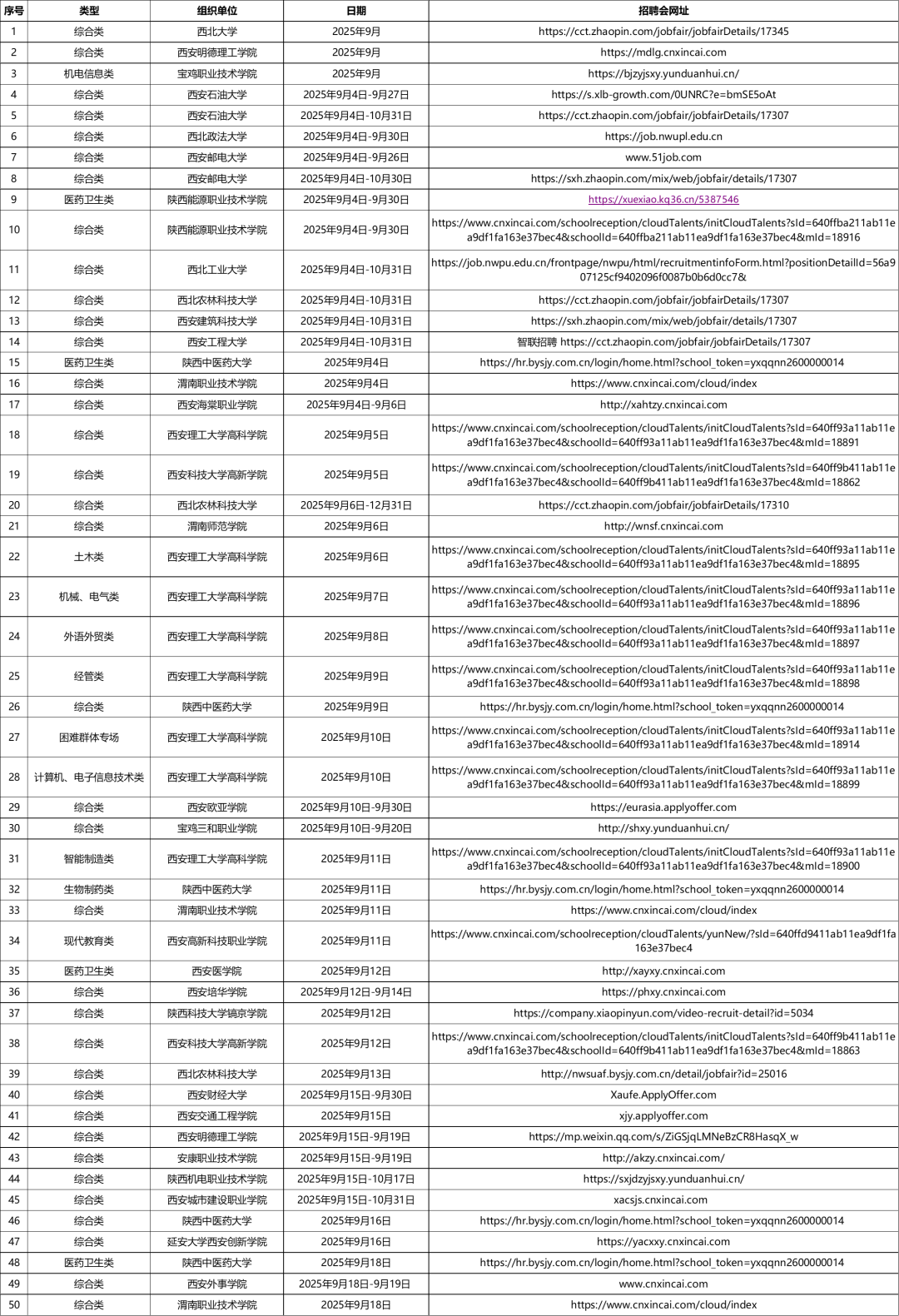 2025年秋季学期陕西省普通高校毕业生网络招聘会时间安排