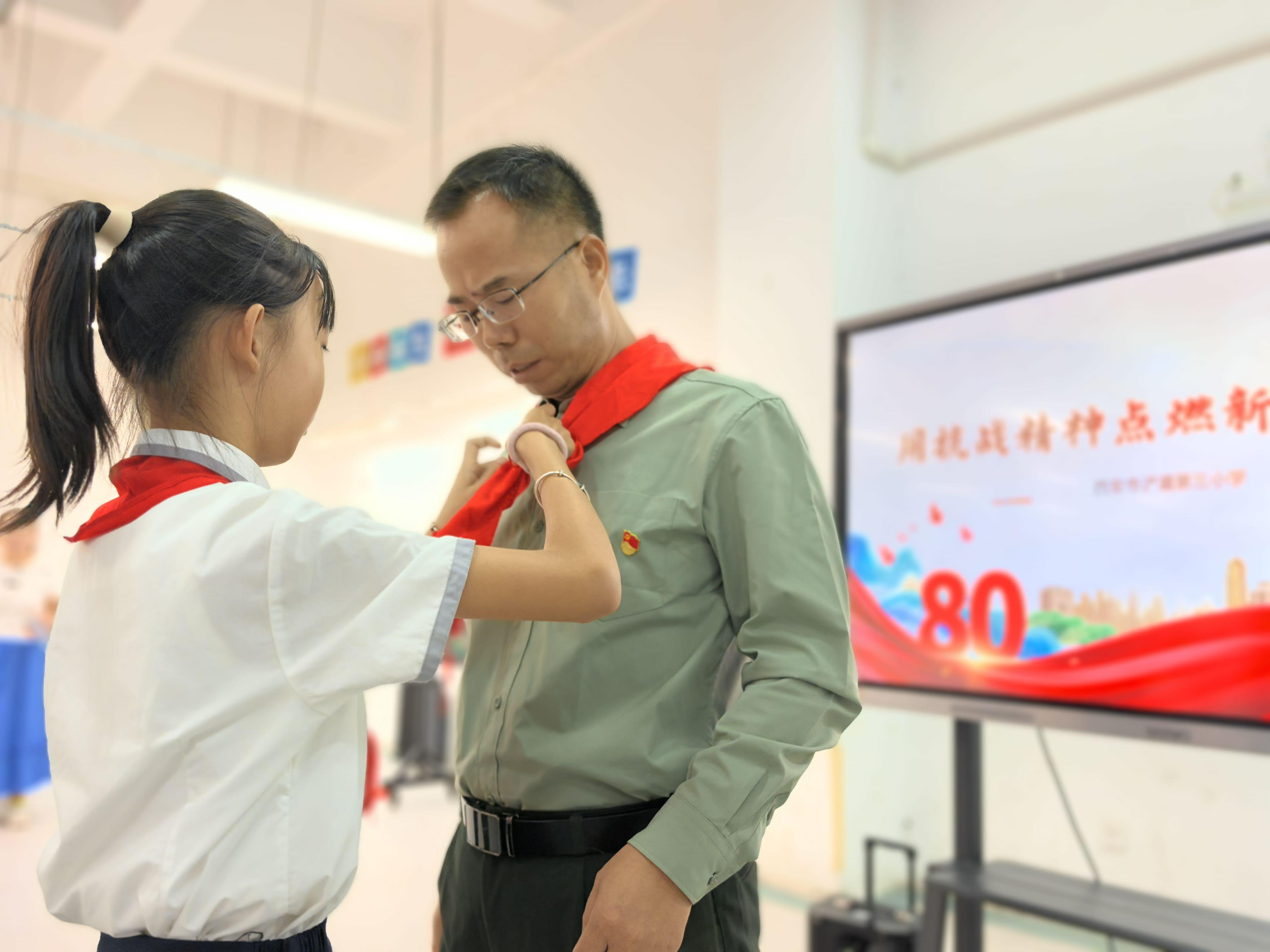 三秦都市报-秦闻讯(记者 雒骋宇)9月3日至4日,西安市浐灞第三小学市级“名校+”特邀退伍军人、原甘肃省嘉峪关市军分区司令部参谋杨银科,在中国人民抗日战争暨世界反法西斯战争胜利80周年这个意义非凡的日子里,带着烽火岁月的记忆走进校园,为少先队员们带来了一堂震撼心灵的爱国主义教育课程。