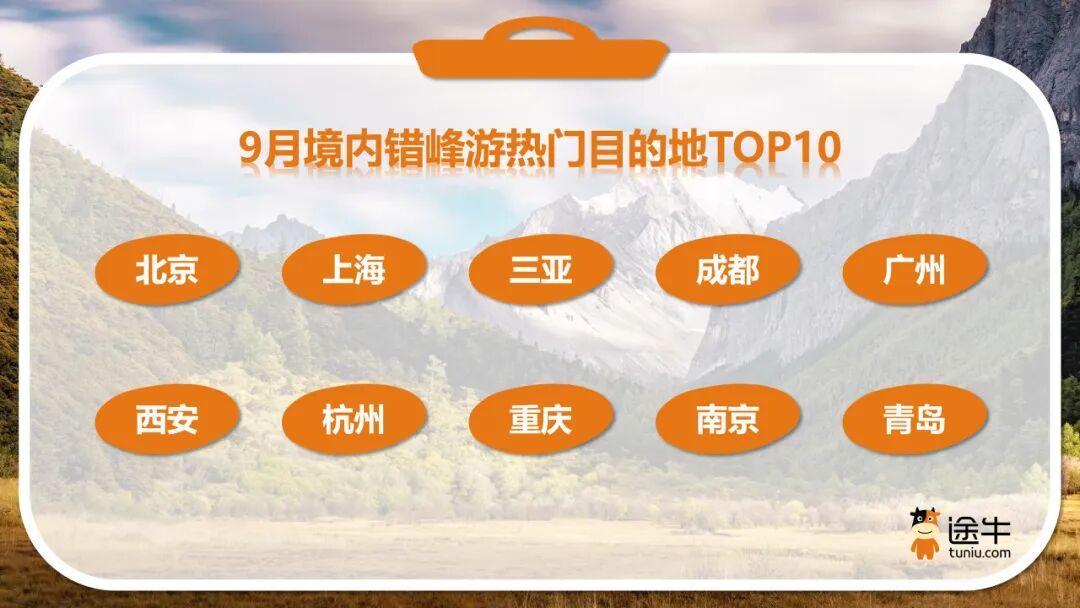 “境内错峰游热门目的地榜单”中,北京、上海、三亚、成都、广州、西安、杭州、重庆、南京、青岛位居前列。