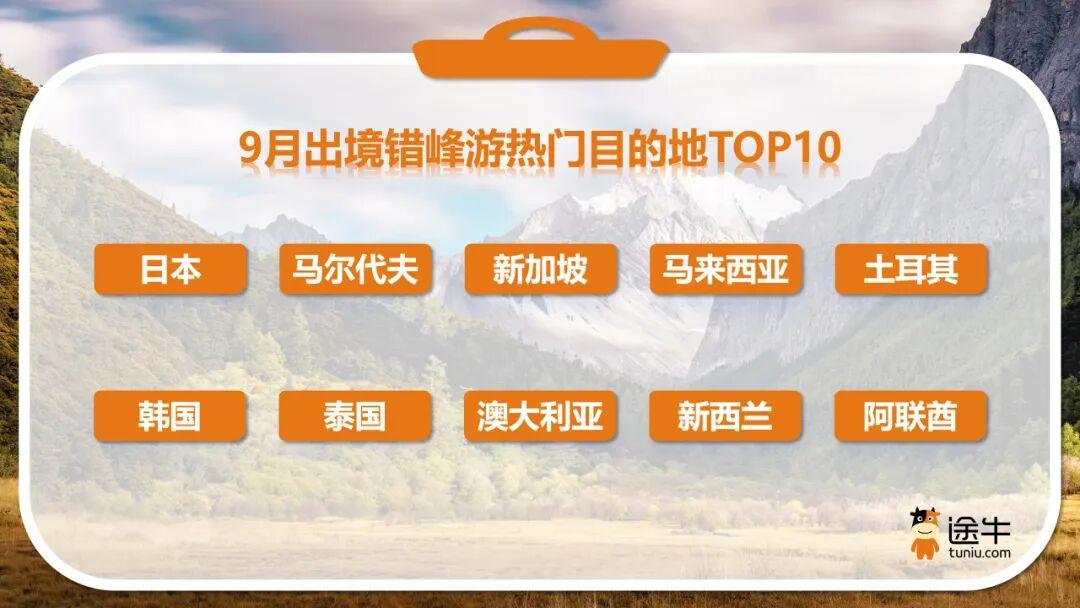 出境错峰游方面,日本、马尔代夫、新加坡、马来西亚、土耳其、韩国、泰国、澳大利亚、新西兰、阿联酋等截至目前的预订热度排名靠前。