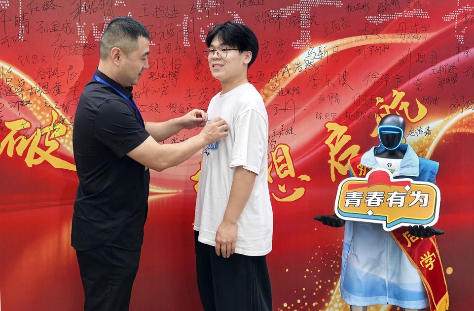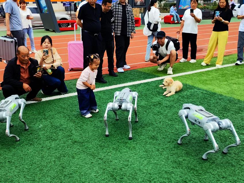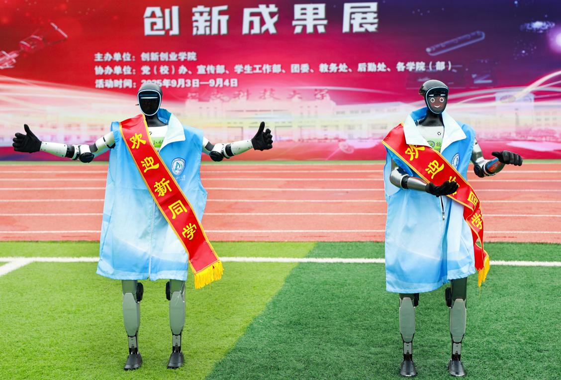 在创新创业学院的创新成果展现场,四只机器狗“西小科”成为焦点。它们不仅迎新现场追逐嬉戏,还“拱手作揖”欢迎新生,欢快地跟新生和家长互动卖萌。同时它们发挥自主导航、自动避障的优势,为新生在校园里引路。机器人“能小智”则化身为“志愿者”,为新生和家长介绍报到注意事项,并参与老师一起为新生佩戴校徽的仪式。展区内还有机甲对抗赛模型演示和无人机表演,汇聚了该校15个学院的73件科创作品,让新生们感受到了西安科技大学校园里浓浓的科技氛围。