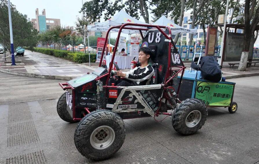 在机械工程学院的迎新点,该校秦风车队的“明星赛车”也前来助阵,学长们开着赛车为新生义务搬运行李,十分拉风。双胞胎姐妹郭添欢与郭添乐今年同时被西安科技大学录取,她们对学校科技感十足的迎新活动赞不绝口。