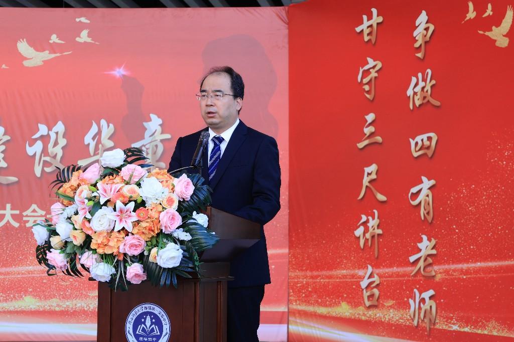 冯军代表学校向全体教职员工致以节日的问候与诚挚感谢。他强调,要深入弘扬“教育家精神”,勉励教师坚守初心、潜心治学、仁而爱人、勇于创新,努力争做新时代“四有”好老师,担当起立德树人的崇高使命。
