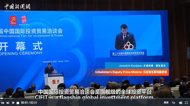 乌兹别克斯坦副总理扎姆希德·霍扎耶夫8日在厦门举行的第二十五届中国国际投资贸易洽谈会(简称为“投恰会”)上表示,投洽会是旗舰级的全球投资平台,也是连接“一带一路”合作伙伴的重要桥梁,为绿色贸易、数字贸易以及产业创新提供了宝贵机遇。