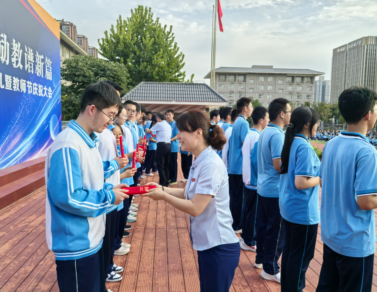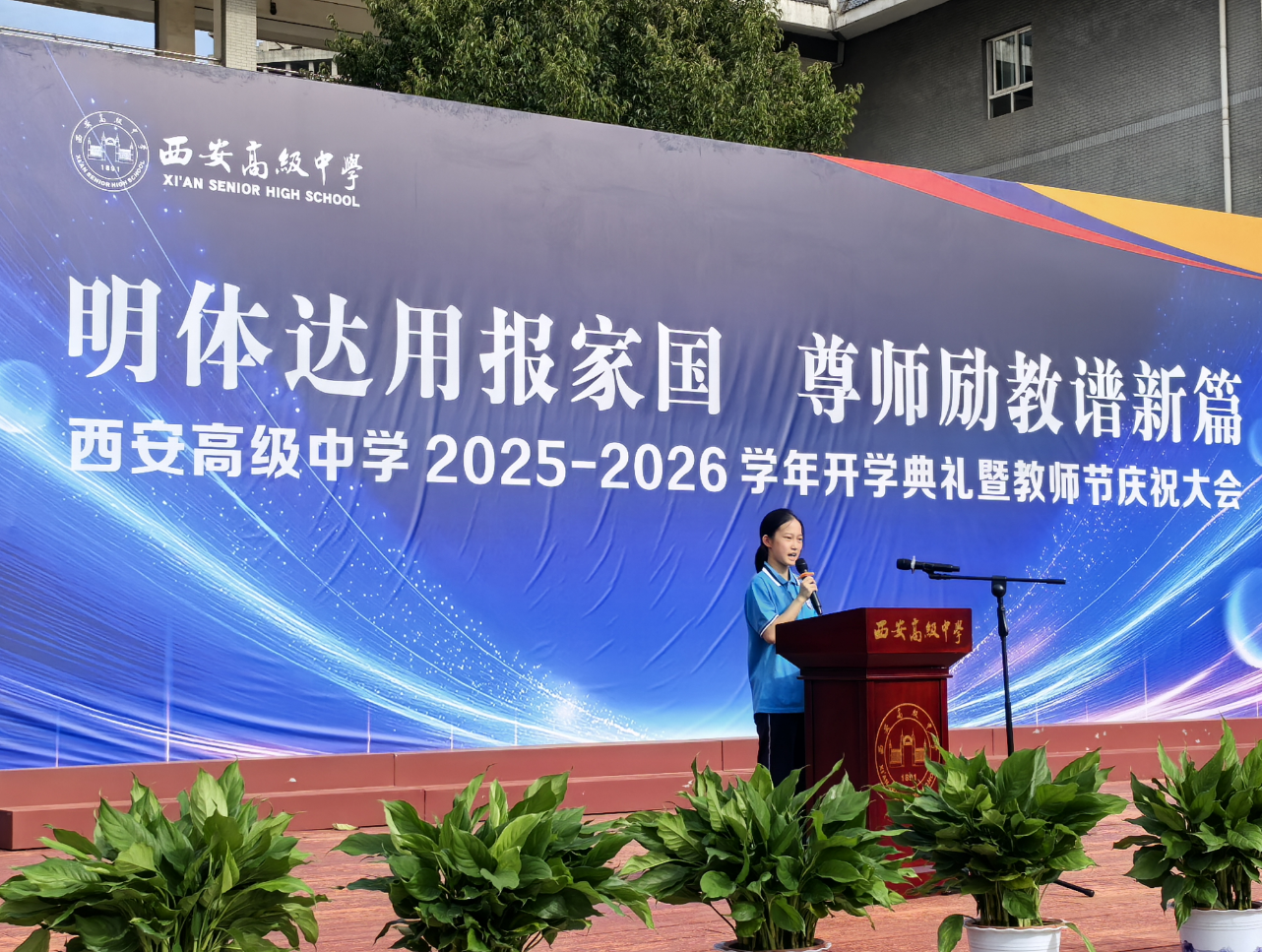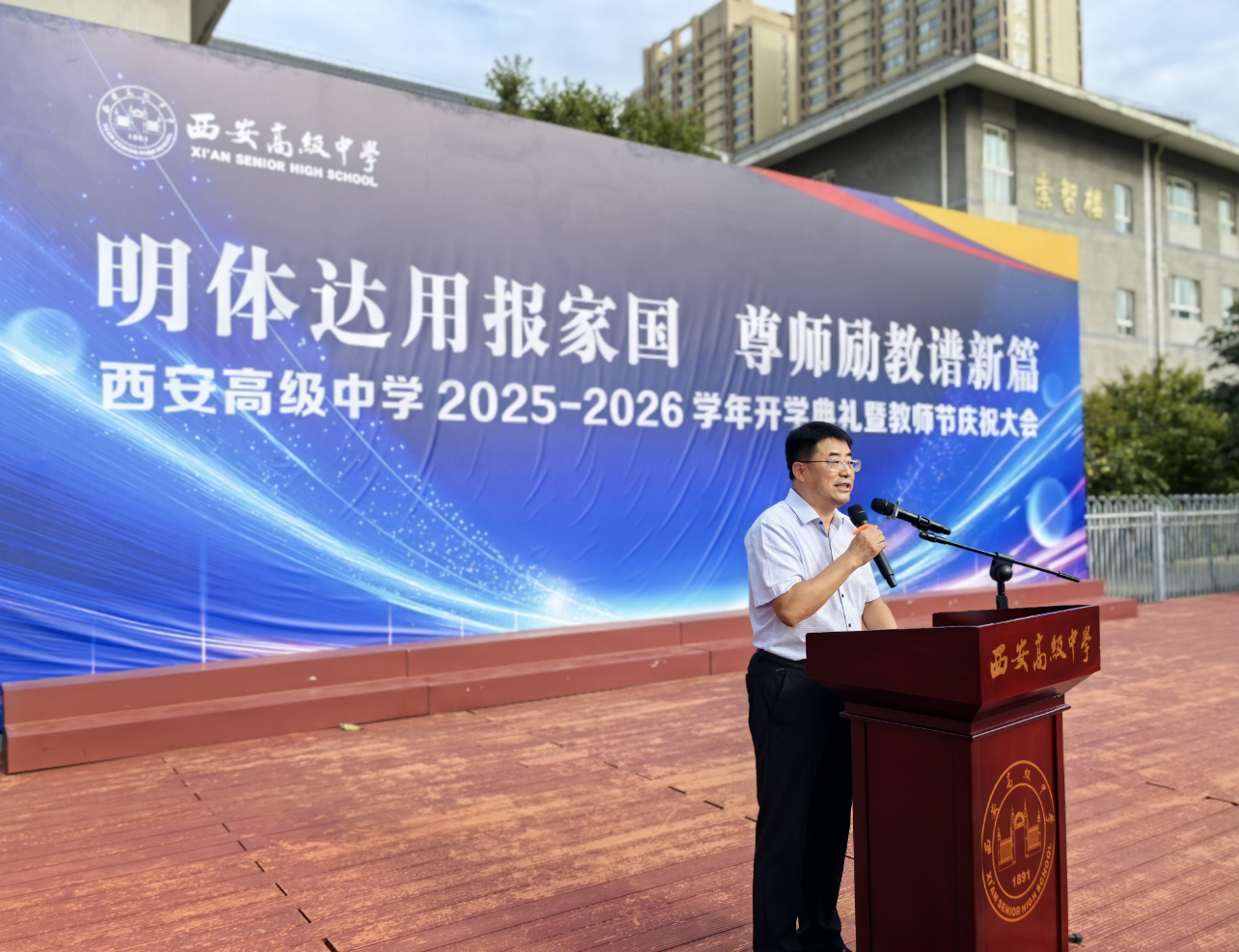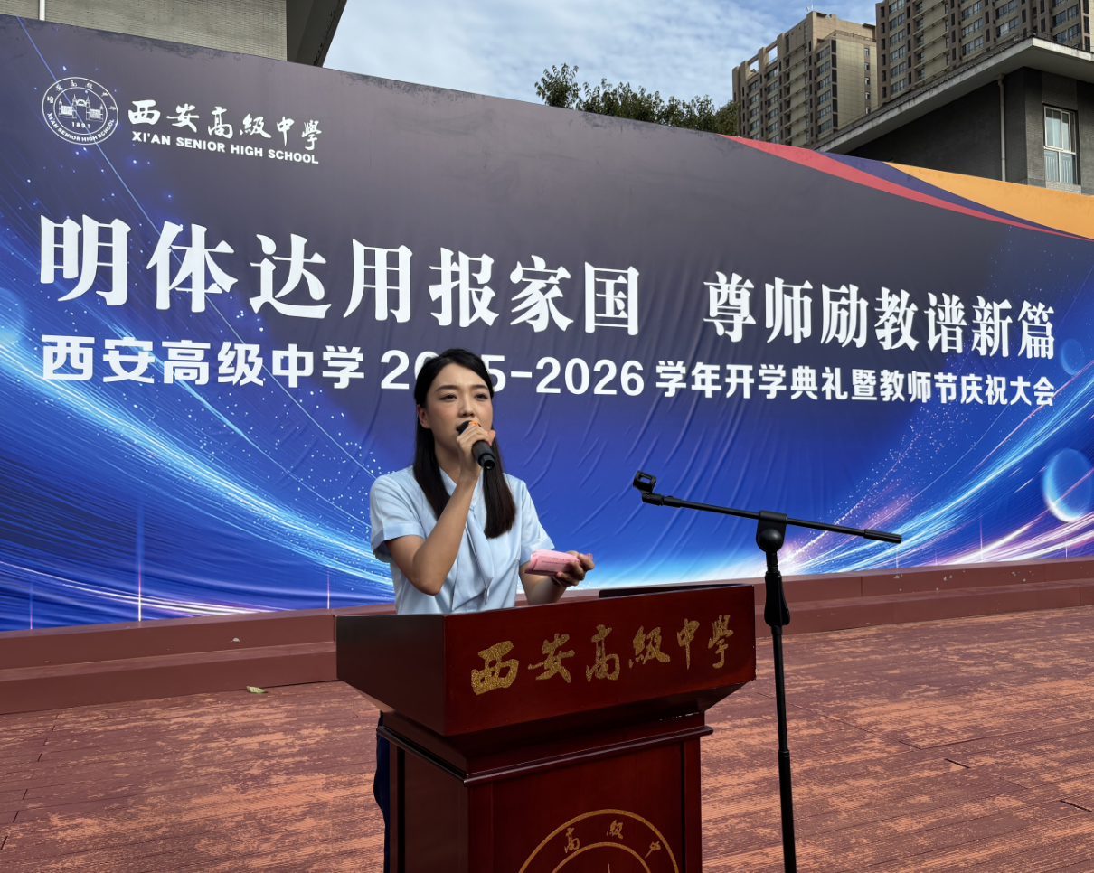 三秦都市报-三秦网讯 金秋送爽,丹桂飘香。2025年9月9日下午4时,西安高级中学在学校操场举行了以“明体达用报家国尊师励教谱新篇”为主题的2025-2026学年开学典礼暨教师节庆祝大会。全校师生齐聚一堂,共同迎接新学年的开启,并向辛勤耕耘的教师们致以节日的崇高敬意。