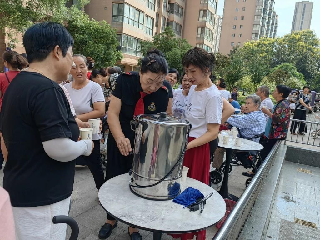 中场休息时,萝卜蹲游戏成了“欢乐催化剂”。大家按红、黄、橙、绿、紫分组,“红萝卜蹲完绿萝卜蹲”的口令声里,有人反应神速,有人笑着“出局”,掌声、喊声把氛围一次次推向高潮。一旁的养生茶摊前,刚跳完舞的张阿姨端着热茶直夸:“社区想得太周到,秋日里喝着暖心又暖胃!”李大爷接过话茬:“不光锻炼了身子,还认识了新朋友,这样的活动要多办!”