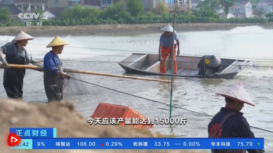 白露时节,浙江各地的鱼塘进入丰收季。在长兴,经过近半年精心养殖的鮰鱼开捕,日产量达15000斤。