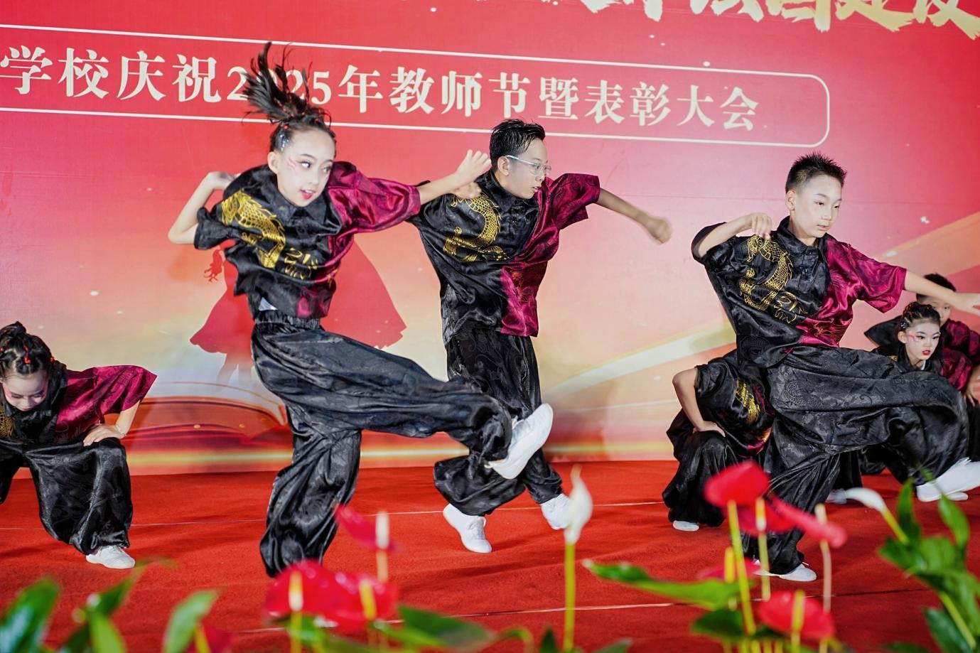 校长樊锁强首先致辞,他向全体教师致以节日问候,并对获奖教师表示祝贺。他回顾了一年来学校在教学质量、教师发展、艺体教育、科创成果与国际交流等方面取得的多项突破,强调这些成绩离不开全体教职工的共同努力。樊校长提出三点期望:坚守教育报国初心,发挥一体化办学优势,弘扬主人翁精神,持续推动学校高质量发展。