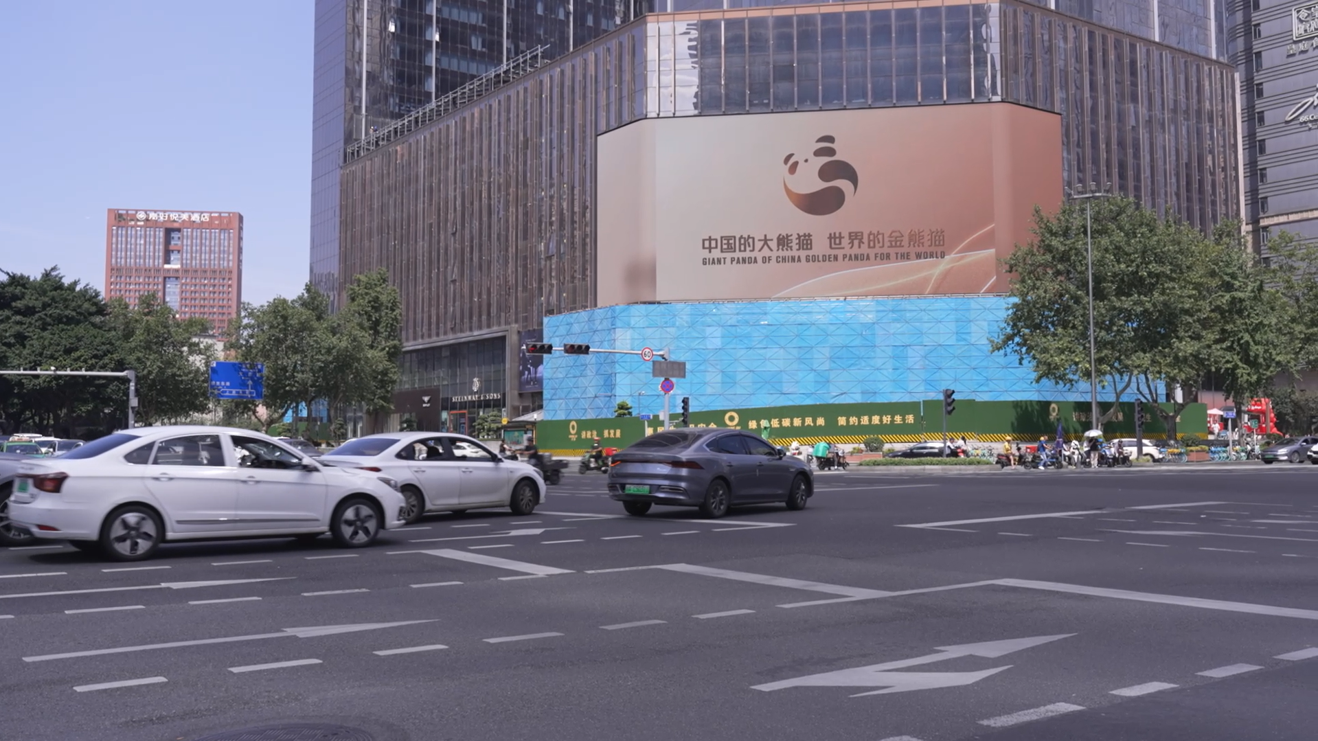 成都街头“金熊猫”氛围十足