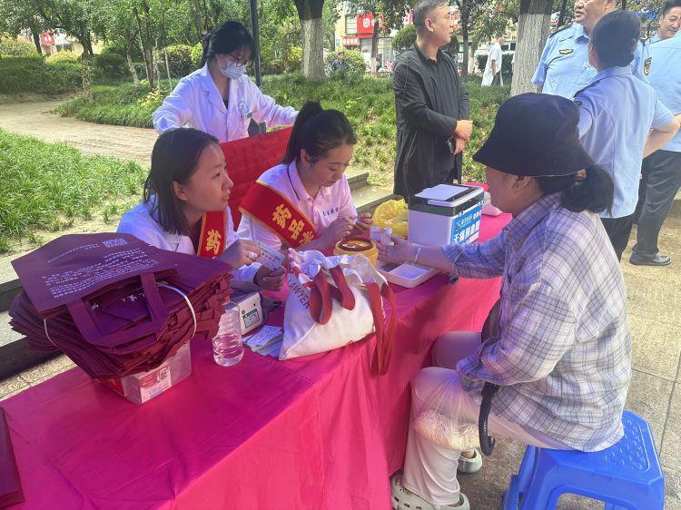 邀请大明宫社区卫生中心医护人员及连锁药店执业药师为居民免费测量血压、血糖,提供健康咨询服务,接受中医把脉问诊,并与药师面对面咨询日常用药安全问题,同时针对部分老年人存在的重复用药、自行调整剂量等问题,给出专业建议,切实让群众感受到药品安全服务的温度与关怀。