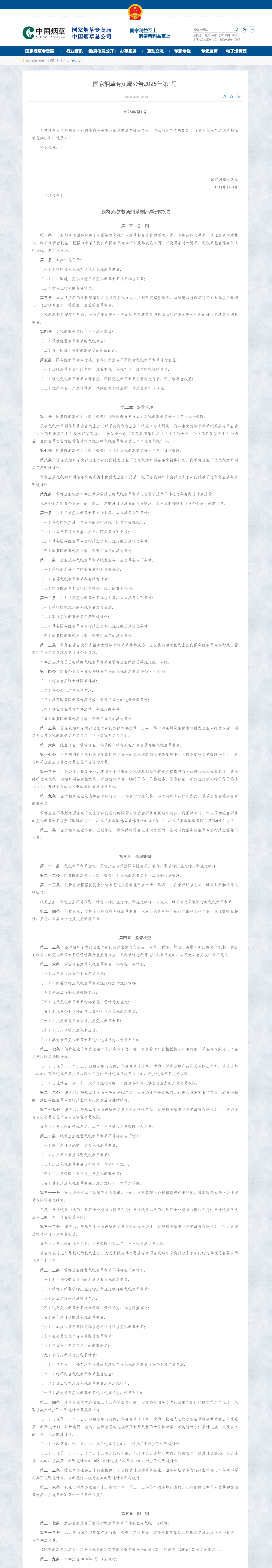 央视网消息:9月12日,国家烟草专卖局公布《境内免税市场烟草制品管理办法》,《管理办法》主要管理措施包括:优化免税烟草制品批发销售流程,加强免税烟草制品计划和价格管理,运用产品目录规范免税烟草制品来源,实行免税烟草制品二维码全流程追溯管理,建设免税烟草制品交易管理平台,以及违法违规行为处理措施等。