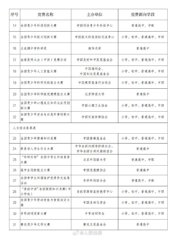 转给中小学生和家长!中小学生全国性竞赛有名单。