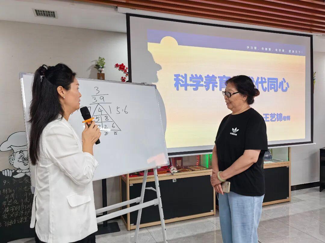 在天赋解读环节,王艺锦运用数字心理学,通过生动的案例,帮助老人们理解每个孩子与生俱来的优势潜能。“不是孩子不够好,只是我们还没有发现他的好。”王艺锦的话让在场的爷爷奶奶、外公外婆们频频点头。