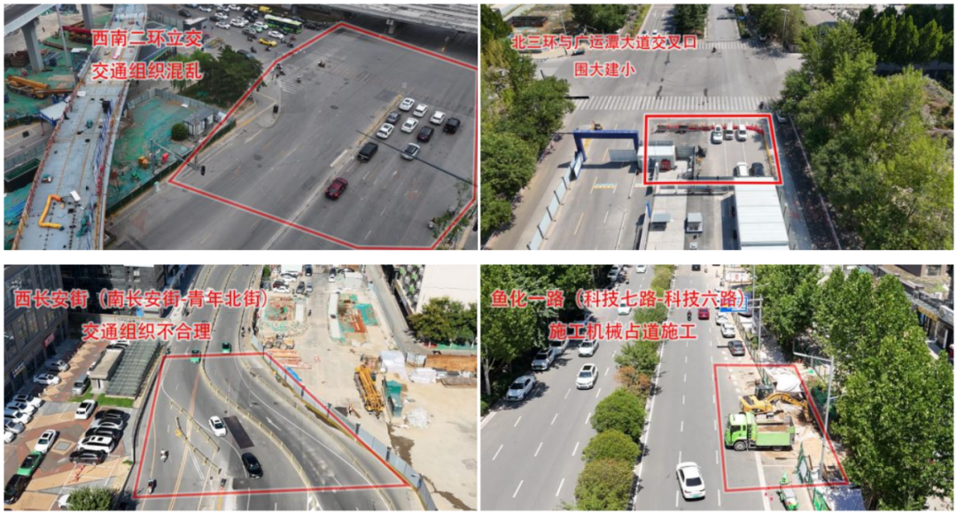近期通过无人机高空巡查,交管部门发现西南二环施工区域存在交通组织混乱问题、广运潭大道施工区域存在“多围多占”问题、鱼化一路存在施工机械占道问题,一经发现均已迅速反馈施工单位“一点一策”进行整改,经公安交警持续督导,目前已经全部整改到位。
