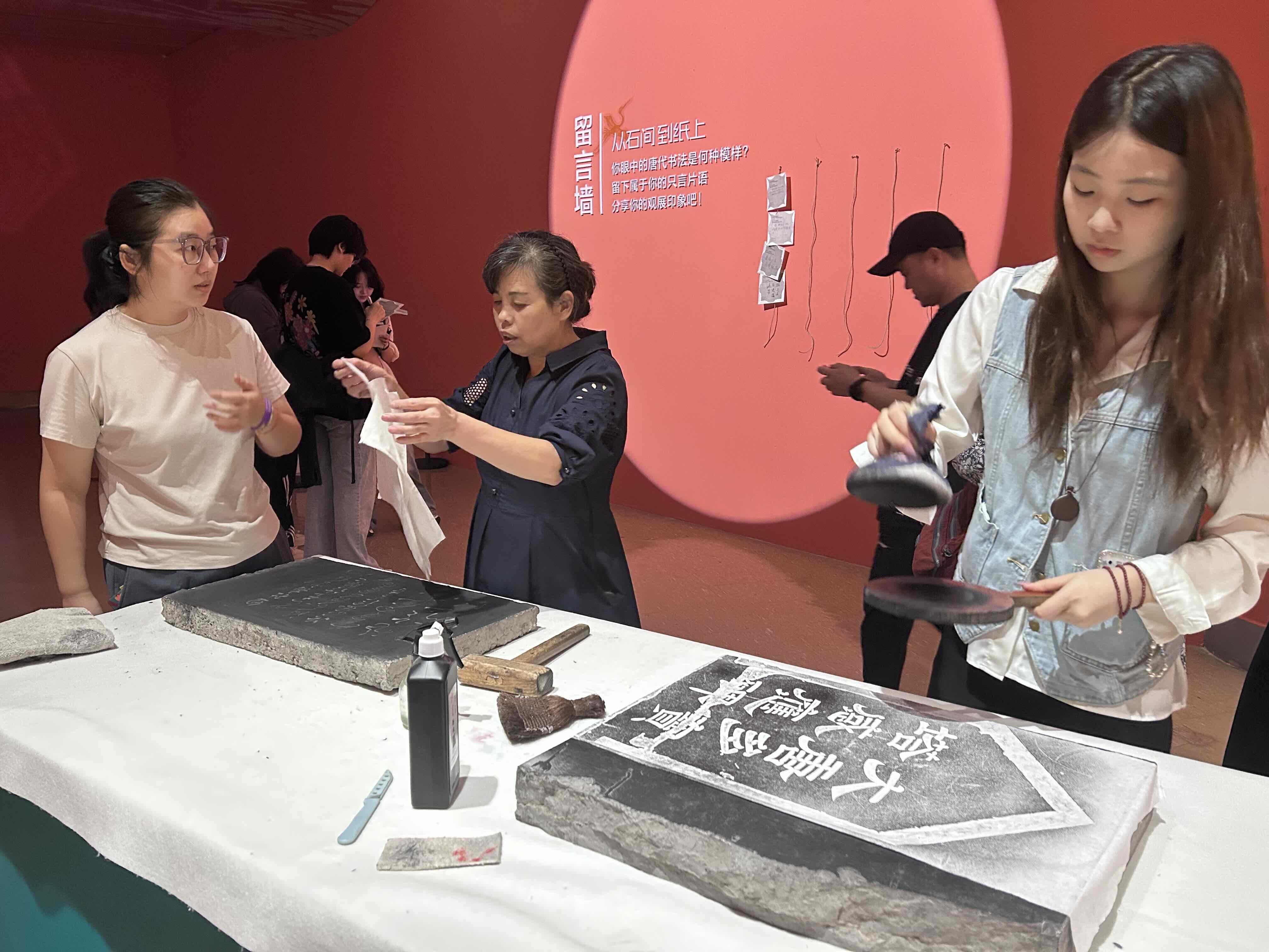 开幕式结束后,还举办了学术研讨会,并推出了专业导赏讲解、专题讲座和拓印体验、“展览翻翻乐”“展览寻宝”“行走的汉字——热缩片手作”等系列公共教育活动。