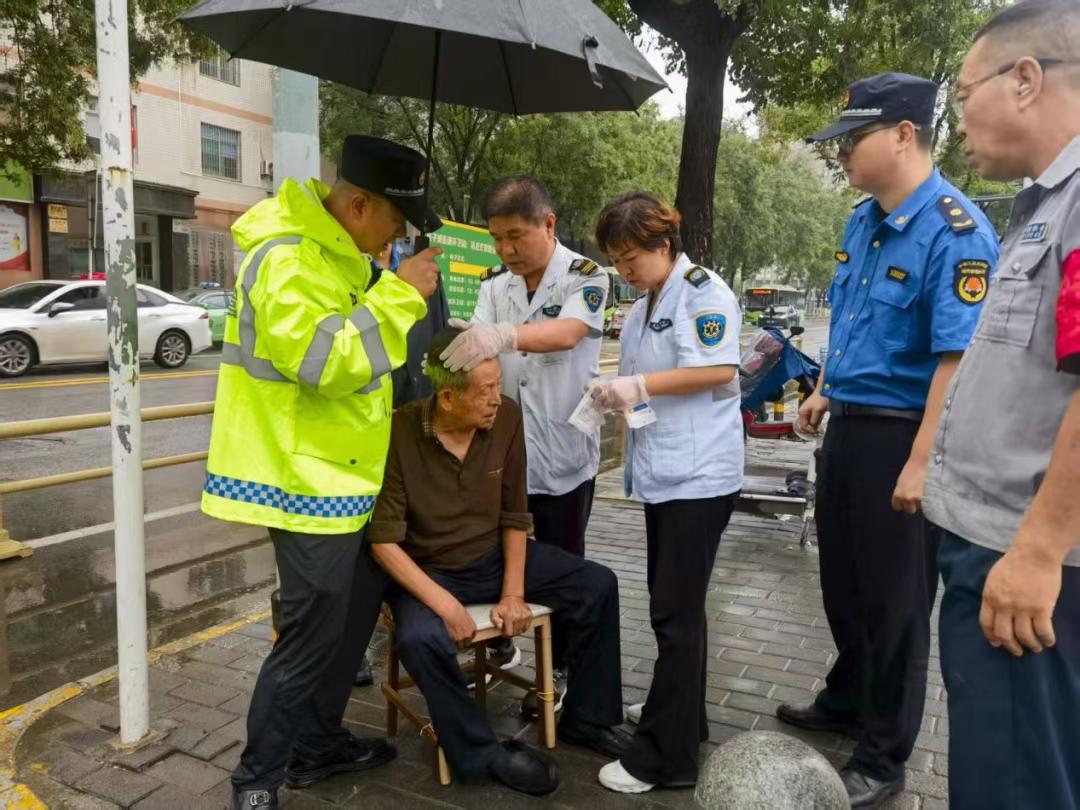 “快!赶紧过去帮忙!”见此情景,队员们没有丝毫犹豫,立即快步冲向现场。车组负责人韩超第一时间明确分工:一边拨打120急救电话,安排队员搀扶老人转移至路边安全区域,并向周边门店借来椅子让老人短暂休息,同时耐心安抚老人情绪;一边组织附近商户、银行保安合力将侧翻的代步车推至路边,快速恢复现场交通秩序,避免二次事故发生。