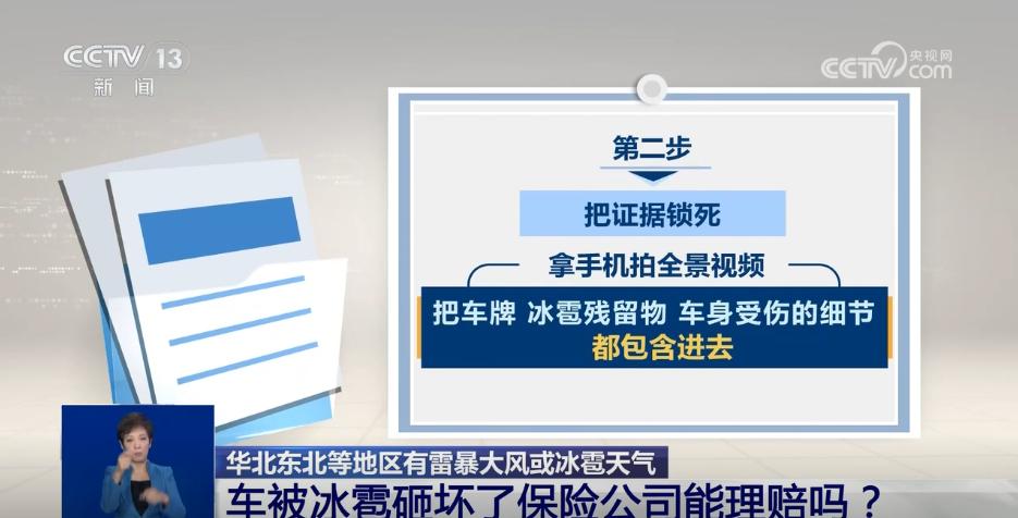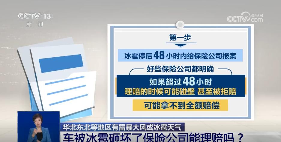 第一步,在冰雹停了以后的48小时内给保险公司报案。现在,好些保险公司都明确,如果超过了48小时,理赔的时候就可能碰壁,甚至被拒赔,可能拿不到全额赔偿。目前,像平安、太平洋这些公司都有“冰雹快拍”功能,上传3张照片就能启动理赔。