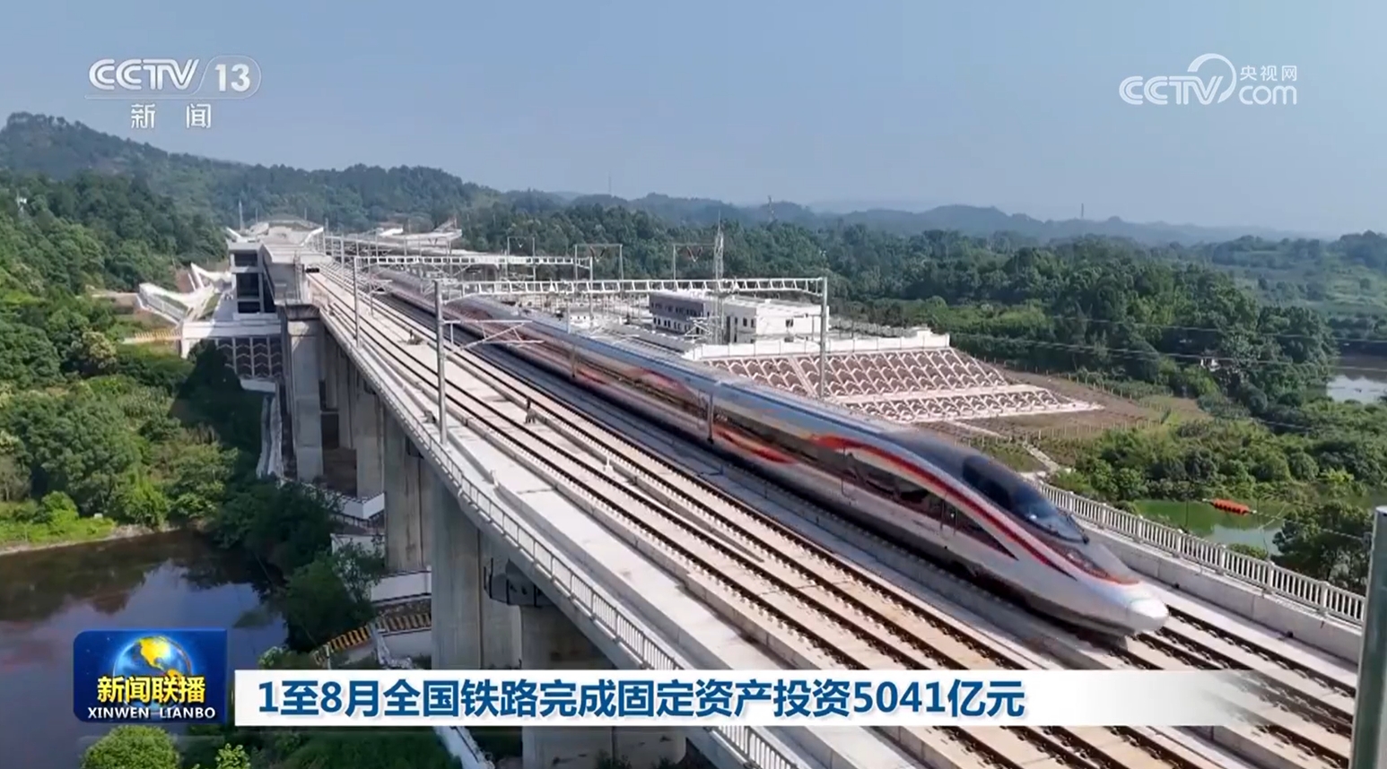 央视网消息(新闻联播):记者从国铁集团获悉,今年1至8月,全国铁路累计完成固定资产投资5041亿元,同比增长5.6%。