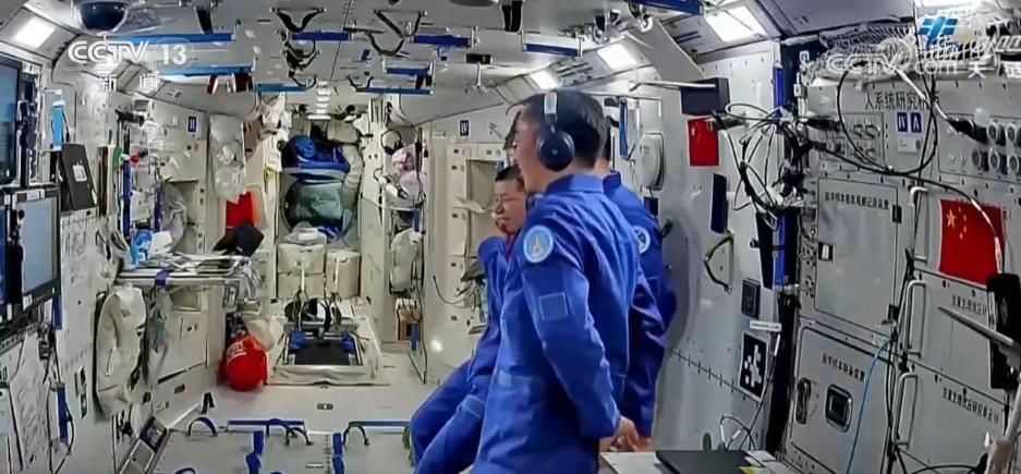 在健康维护与保障方面,乘组按计划进行了运动心肺功能测试,并在积极开展身体锻炼的同时,利用神经肌肉刺激仪对抗肌肉萎缩。