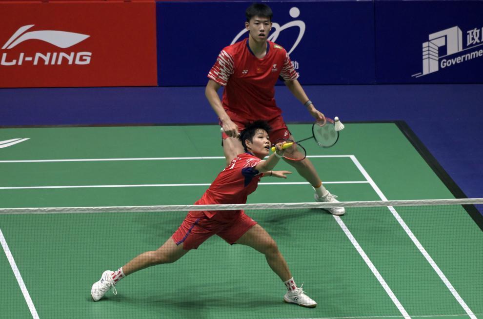 9月14日,冯彦哲/黄东萍(前)在比赛中。新华社发(卢炳辉 摄)