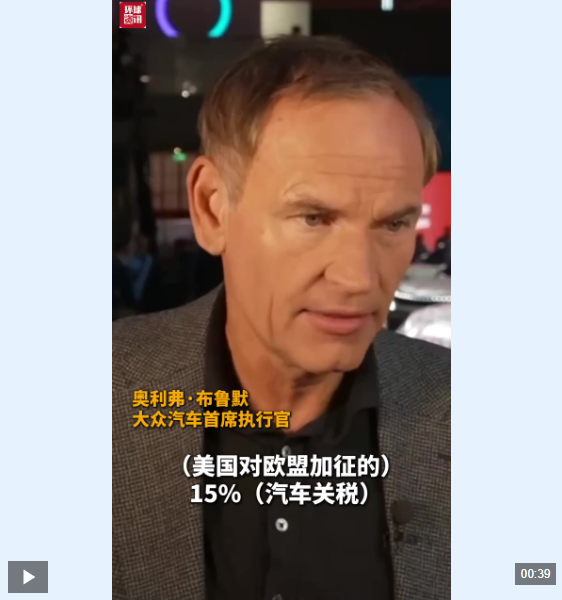 美国对欧盟加征的15% 汽车关税对大众汽车集团是沉重的负担,这一点非常清楚。我们对美国和欧盟之间的不对称交易不满,因为它扭曲了欧洲的市场竞争。”