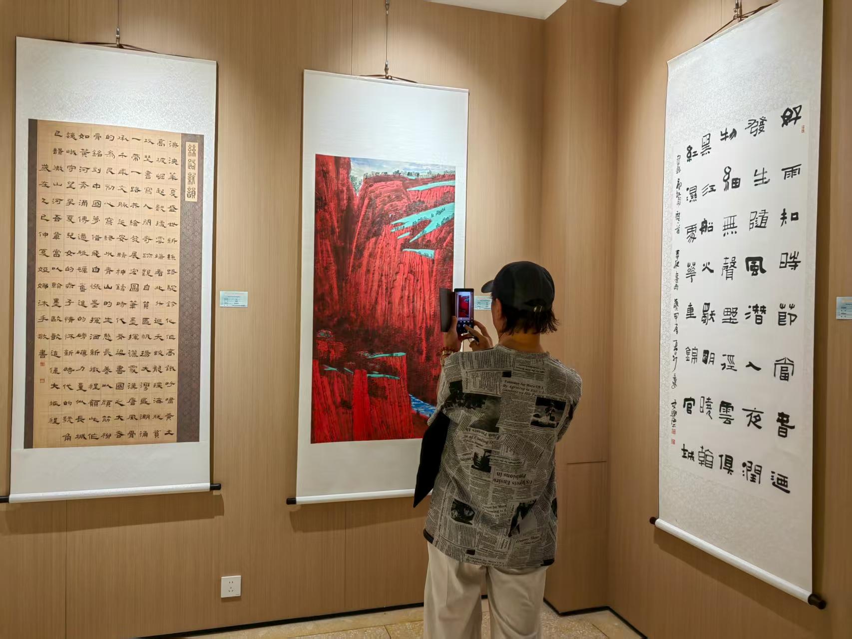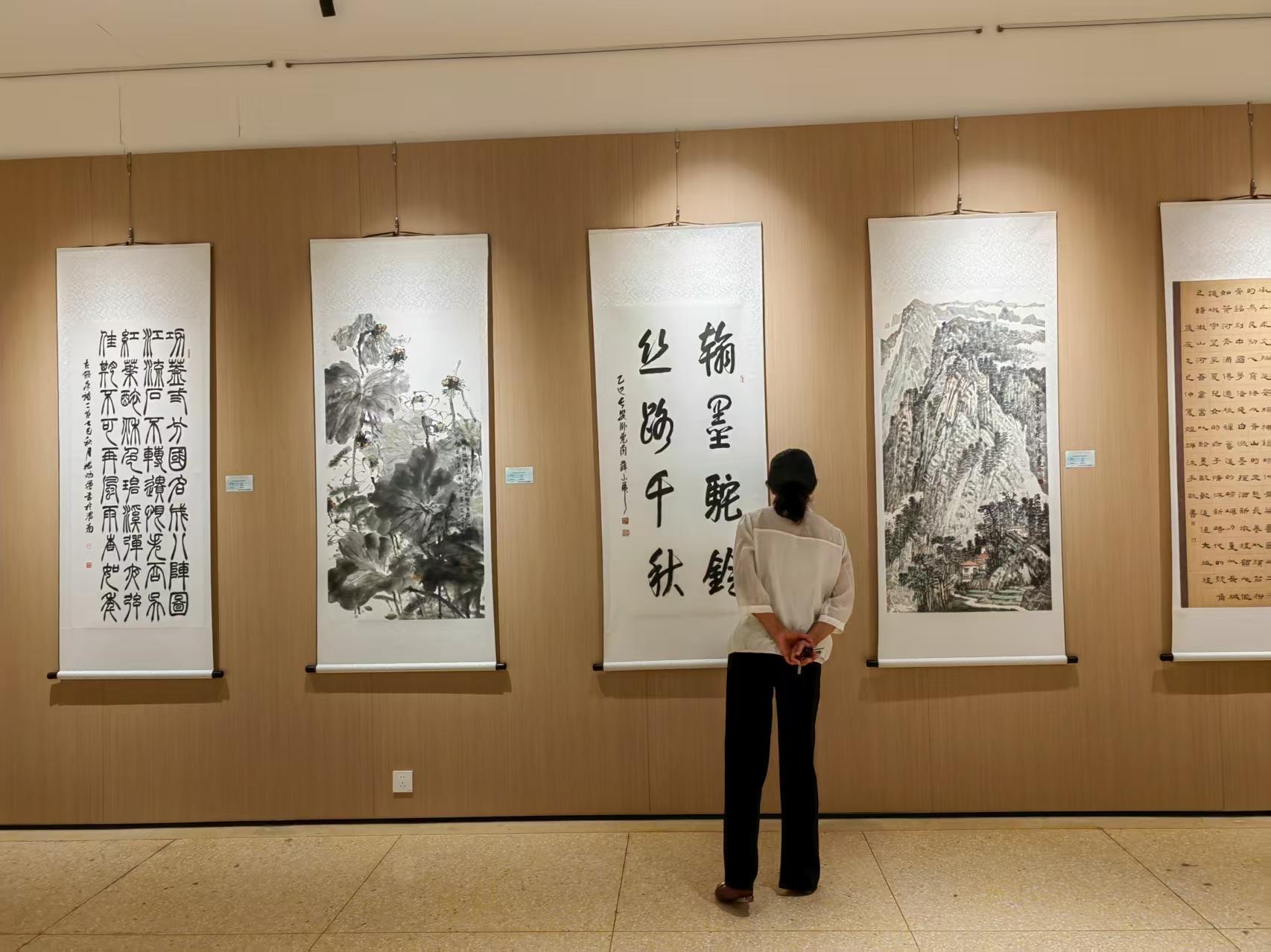 记者在现场看到,展览涵盖中国画、书法两大门类,题材广泛、风格多元。艺术家们或以磅礴笔墨描绘时代气象,或以细腻笔触传递乡土深情,用多元艺术语言诠释丝路文化包容、开放、创新的精神内核,展现新时代书画创作的蓬勃活力。