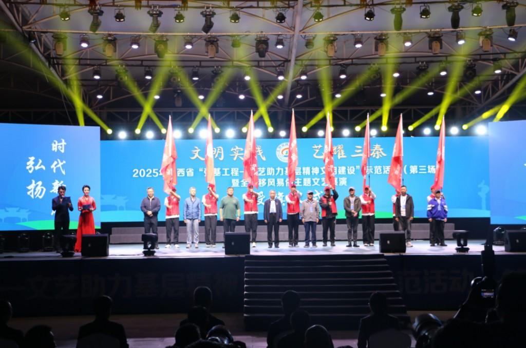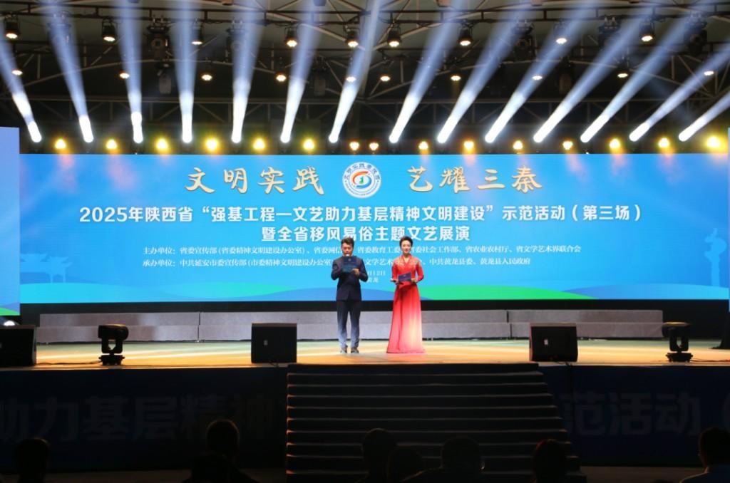 三秦都市报-三秦网讯(杜婷)9月12日,2025年陕西省“强基工程——文艺助力基层精神文明建设”示范活动(第三场)暨全省移风易俗主题文艺展演在延安黄龙县新时代文明实践广场举行。本次活动以“文明实践·艺耀三秦”为主题,由中共陕西省委宣传部(省委精神文明建设办公室)、省委网信办、省委教育工委、省委社会工作部、省农业农村厅、省文联共同主办,中共延安市委宣传部(市委精神文明建设办公室)、延安市文联、中共黄龙县委、黄龙县人民政府承办。
