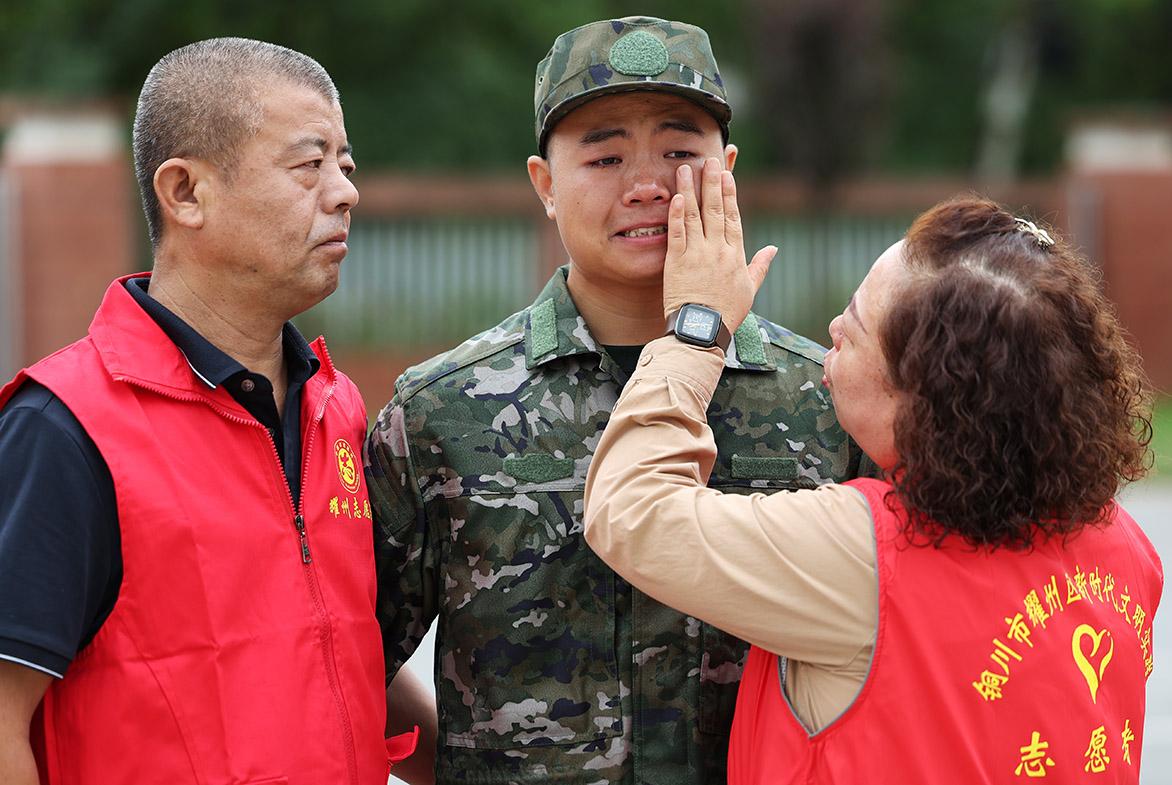 “妈,您别哭,我是男子汉了,到部队肯定好好干。”赵忠航安慰着母亲,可他自己的眼泪却又不争气地涌了上来——他知道,这一别,是暂时离开小家的温暖,是为了守护更大的“家”。