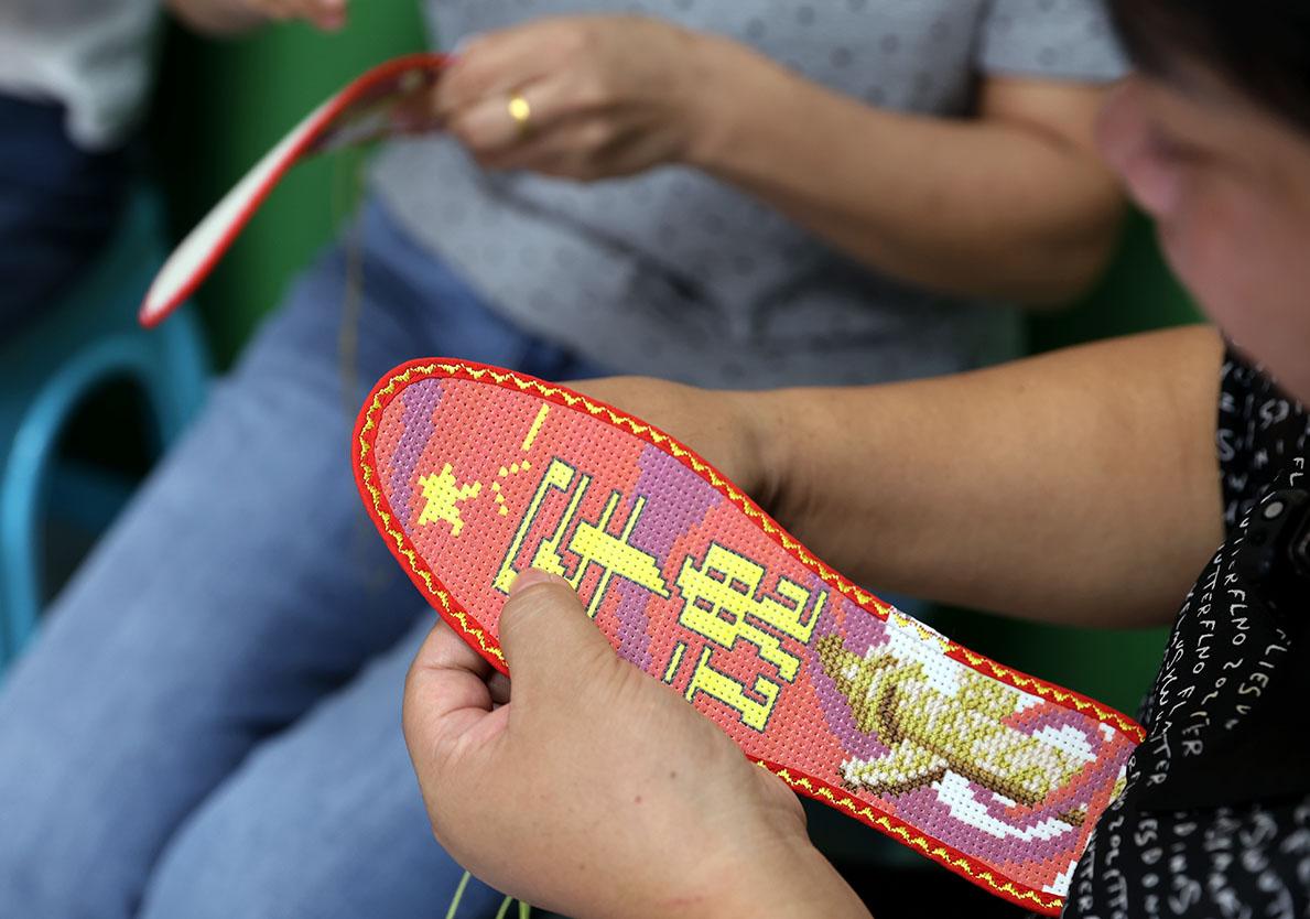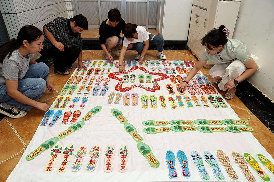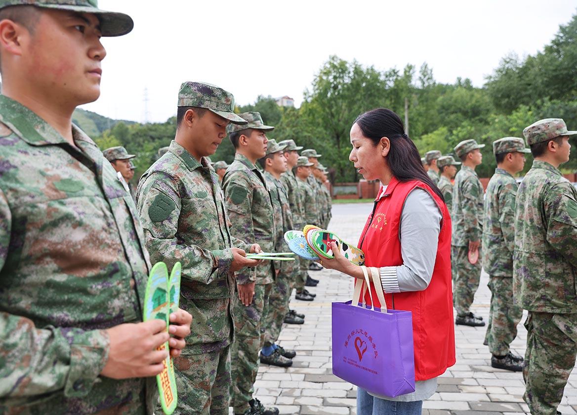 也是在那年,张兰第一次给新兵送鞋垫。当时她自掏腰包买了200双防汗鞋垫。回忆起当时的场景,她说:“我没说自己是军人遗属,怕孩子们有心理负担,只说我是军嫂,来送祝福的。”看着孩子们挺拔的身影,张兰心里萌生了一个想法:“机器做的鞋垫再好,也少了点家乡人的心意,要是能亲手绣,娃们肯定更温暖。”