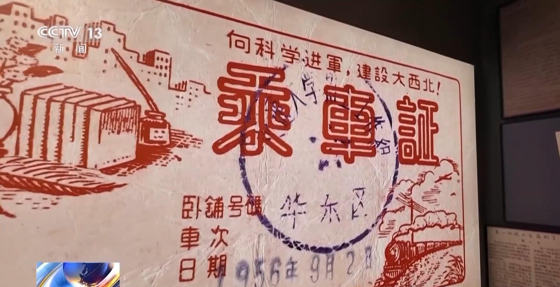 面对党和国家的召唤,1956年,1400多名教工、近3000名学生毅然踏上西行的列车。陈列柜里这张粉色的乘车证,是交大西迁的历史见证,上面这则“向科学进军,建设大西北!”的豪迈宣言,凝聚着那代知识分子的家国情怀。