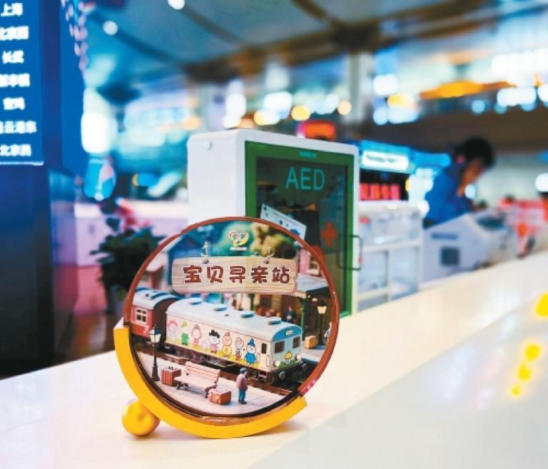 西安火车站服务台上摆放着“宝贝寻亲站”的标识