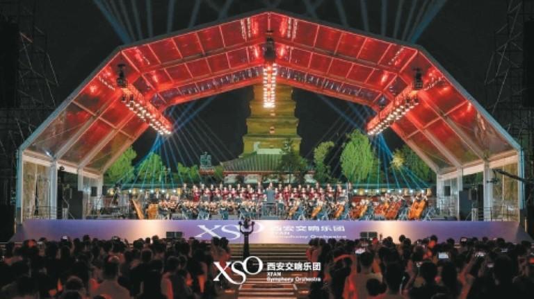 西安交响乐团大雁塔户外公演已成为全国知名的“音乐名片” 受访单位供图