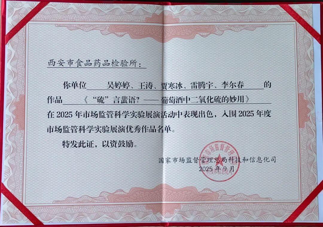 三秦都市报-秦闻讯(记者 葛兰)9月15日,由市场监管总局主办的2025年市场监管科学实验展演(第二阶段)在浙江杭州鸣锣开赛。经过激烈角逐,代表陕西省参赛的西安市市场监管局所属西安市食品药品检验所展演团队凭借出色表现,成功入围优秀作品名单。